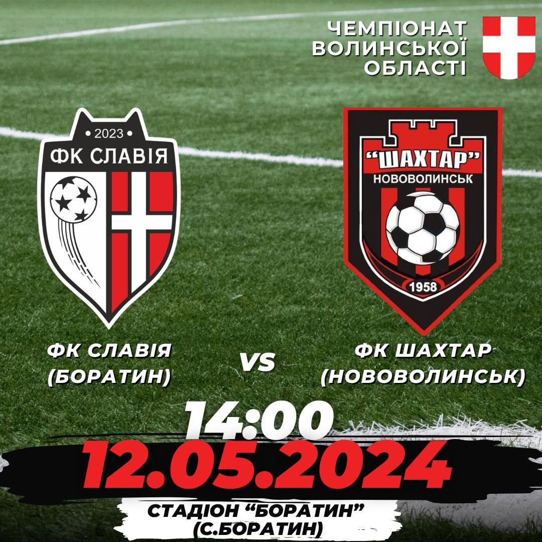 У неділю, 12 травня, відбудеться перший домашній матч для команди ФК «Славія» (Боратин). Гра проходитиме в рамках Чемпіонату Волині з футболу сезону 2024 року. Суперником наших гравців буде фіналіст Кубка Волині сезону 2023 року ФК «Шахтар» (Нововолинськ). Матч відбудеться на території Боратинського спорткомплексу о 14:00.