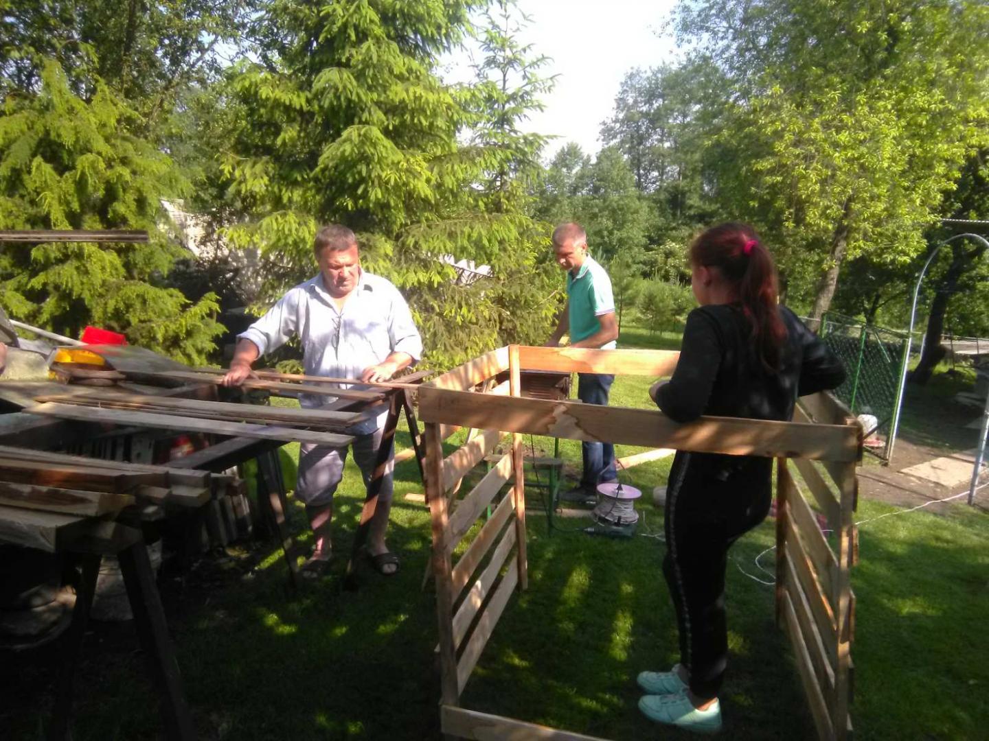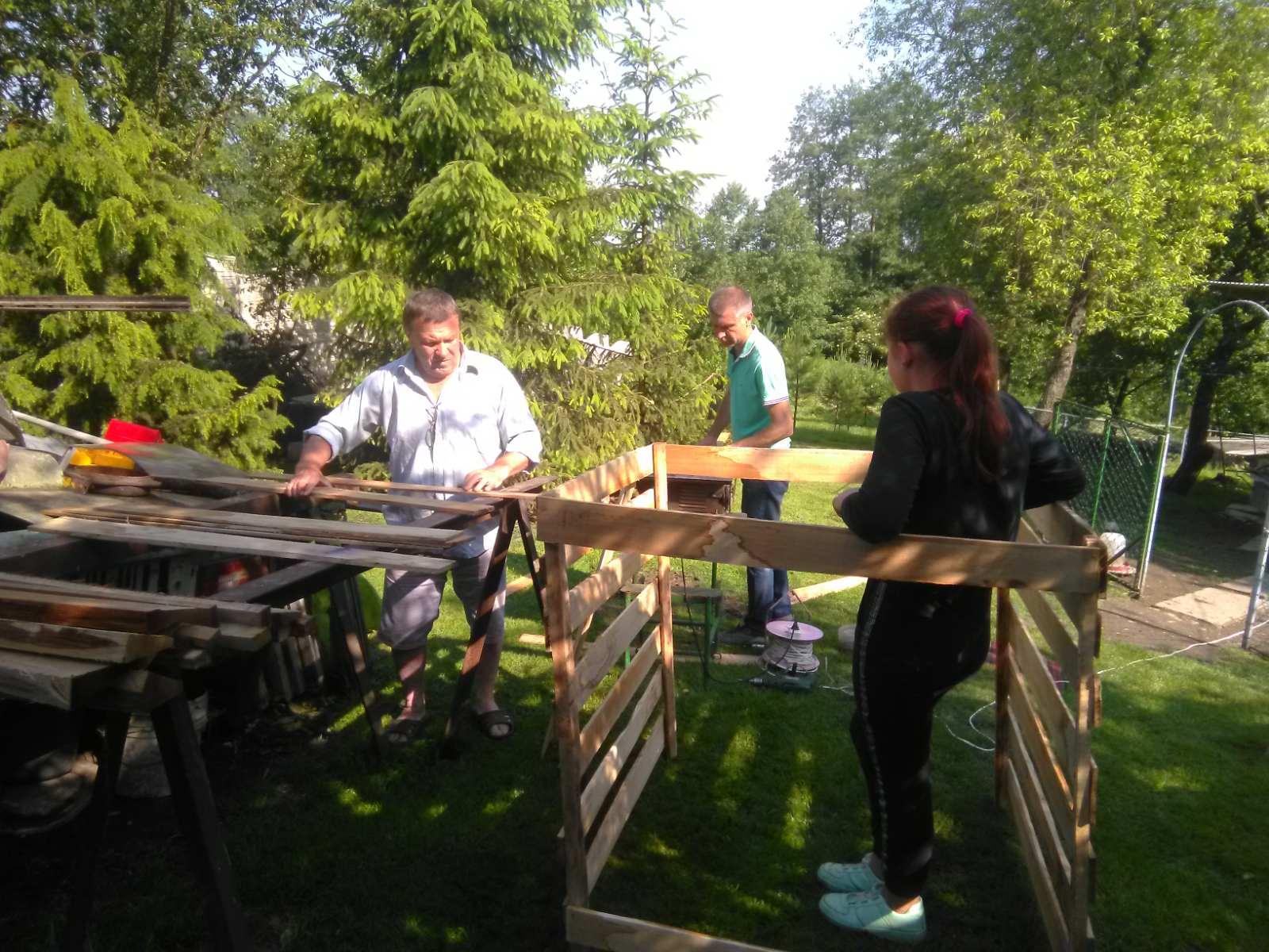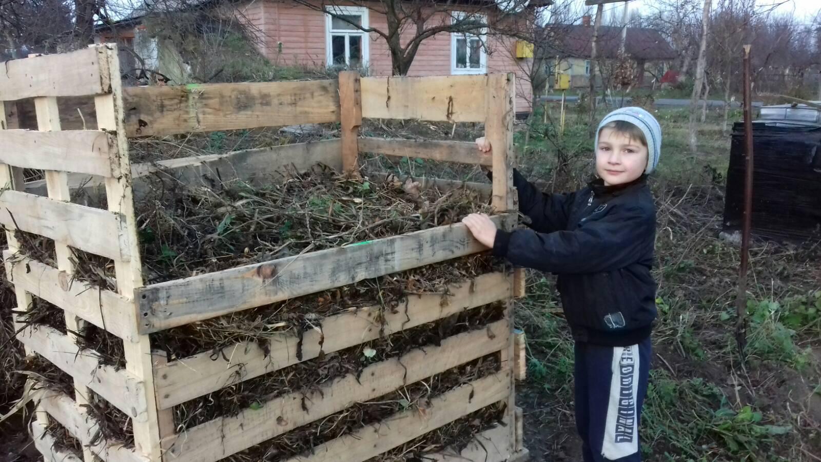 12. Еко-команда села Мстишин без участі дорослих зробила два компостери. Дорослі лише спостерігали й допомагали консультативно.