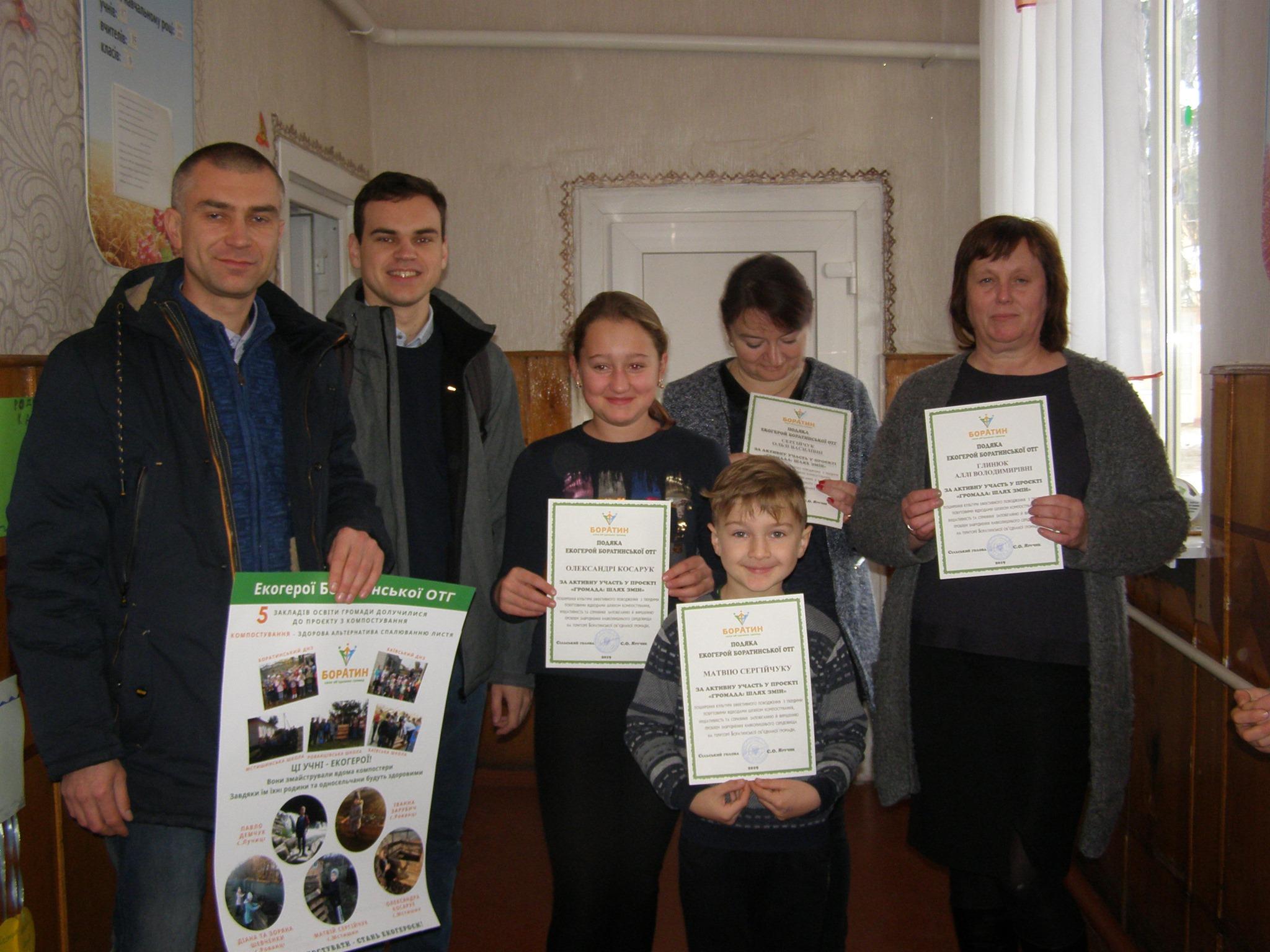 5. У школах сіл Баїв, Мстишин, Рованці під керівництвом Сергія Качкало учні самостійно виготовили та встановили компостери.