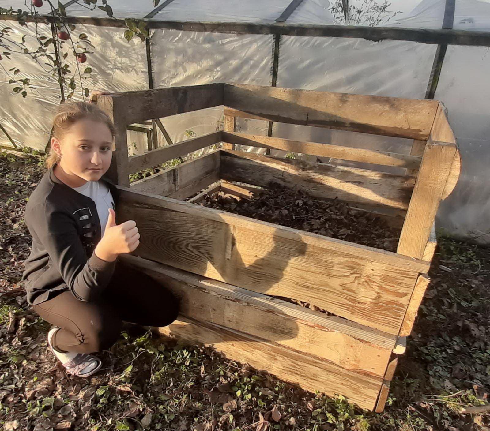 14. У Баївській школі самостійно зробили ще два компостери. Восени всі чорнобривці й листя учні заклали в компостери.