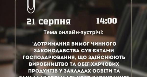 Тема: «Дотримання вимог чинного законодавства суб’єктами господарювання, що здійснюють виробництво та обіг харчових продуктів у закладах освіти та закладах громадського харчування».