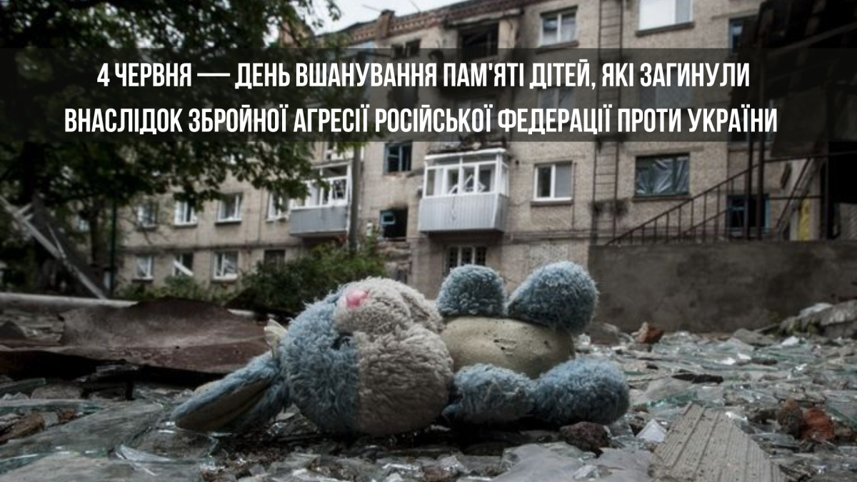 4 червня — День вшанування пам'яті дітей, які загинули внаслідок збройної агресії Російської Федерації проти України. Просимо хвилиною мовчання вшанувати пам’ять усіх діточок, чиї життя забрала війна. Схиляємо голови у щирій молитві за вічний спокій невинних дитячих душ.