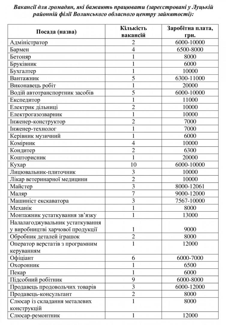 Волинський обласний центр зайнятості інформує про перелік актуальних вакансій, зареєстрованих у Луцькій районній філії. Із переліком, кількістю вакансій та відомостями щодо заробітної плати можна ознайомитися нижче.