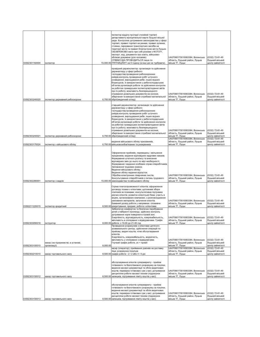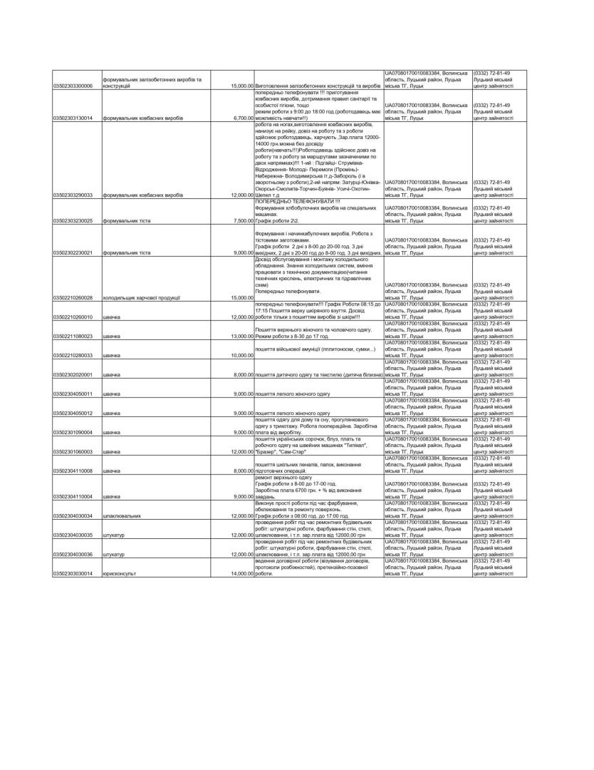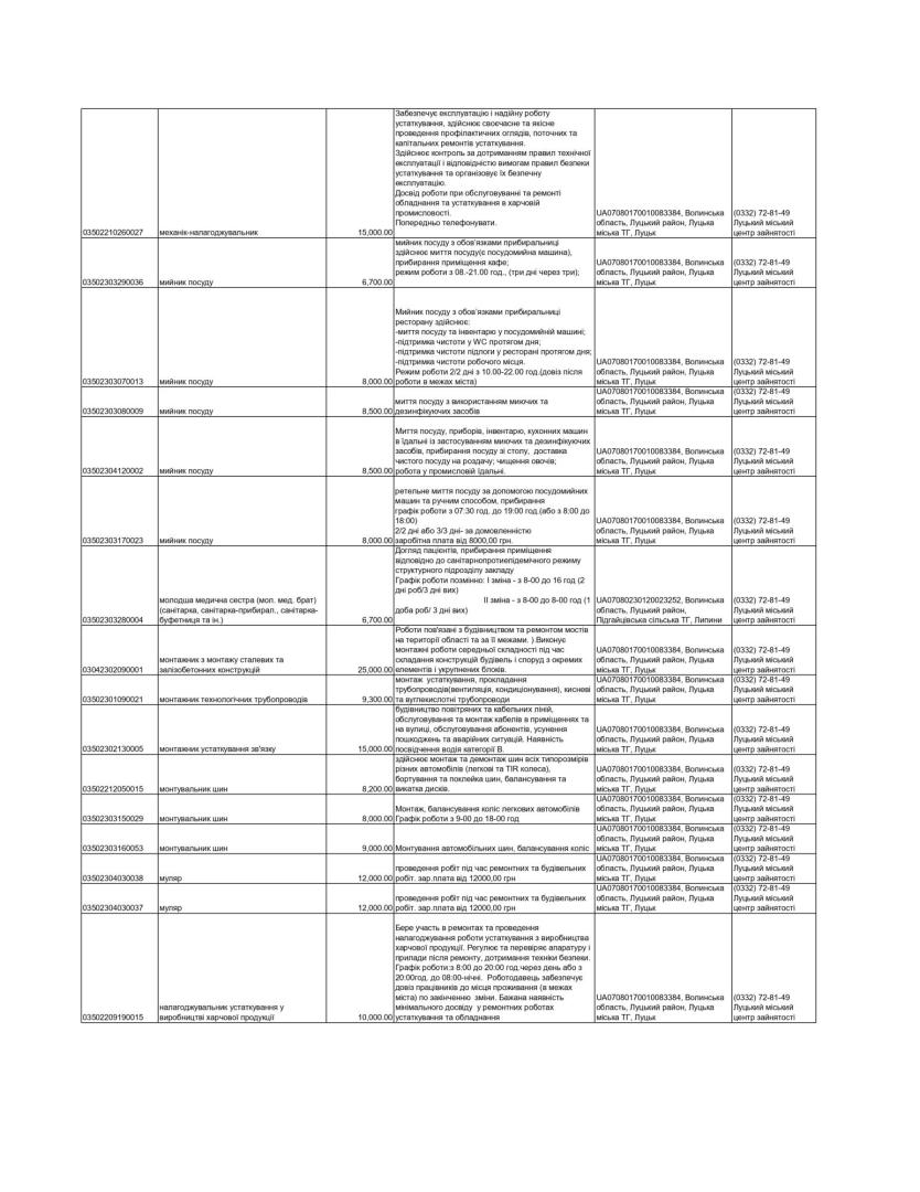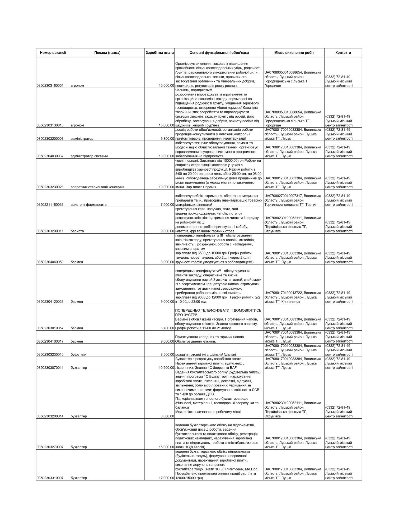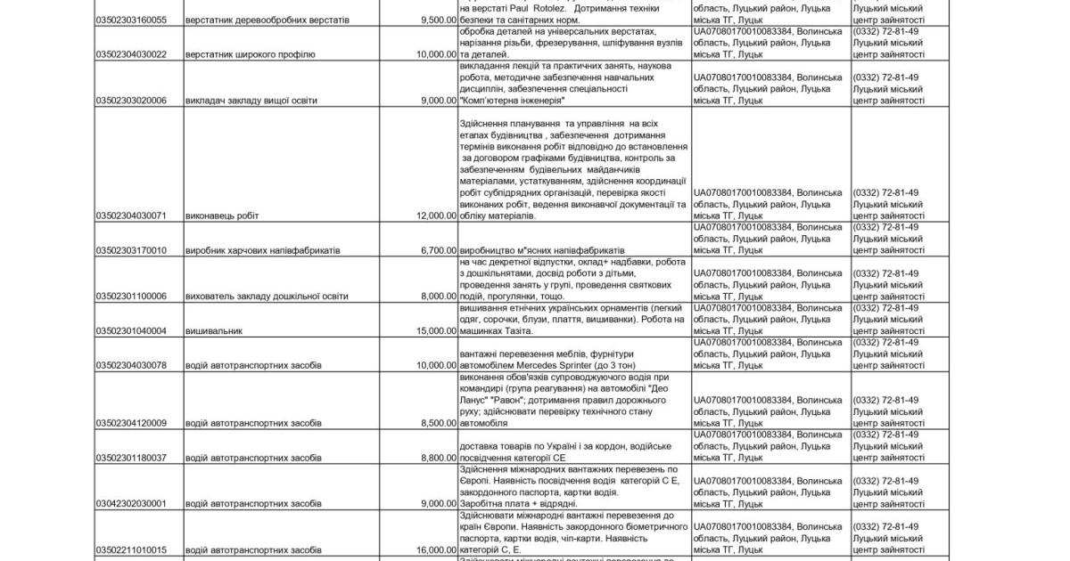 Волинський обласний центр зайнятості інформує про перелік актуальних вакансій, зареєстрованих у Луцькій філії. Із переліком вакансій та відомостями щодо заробітної плати можна ознайомитися нижче.