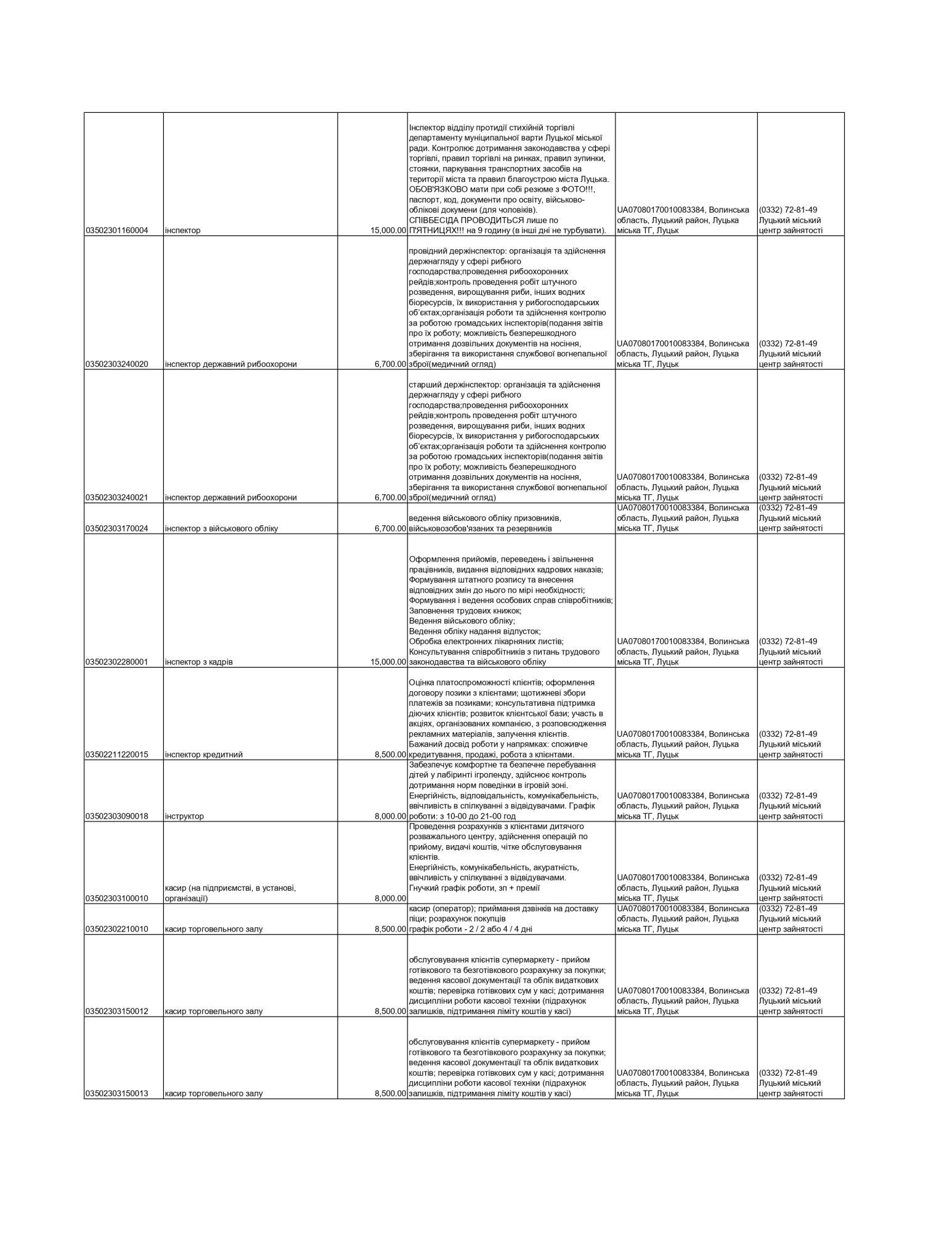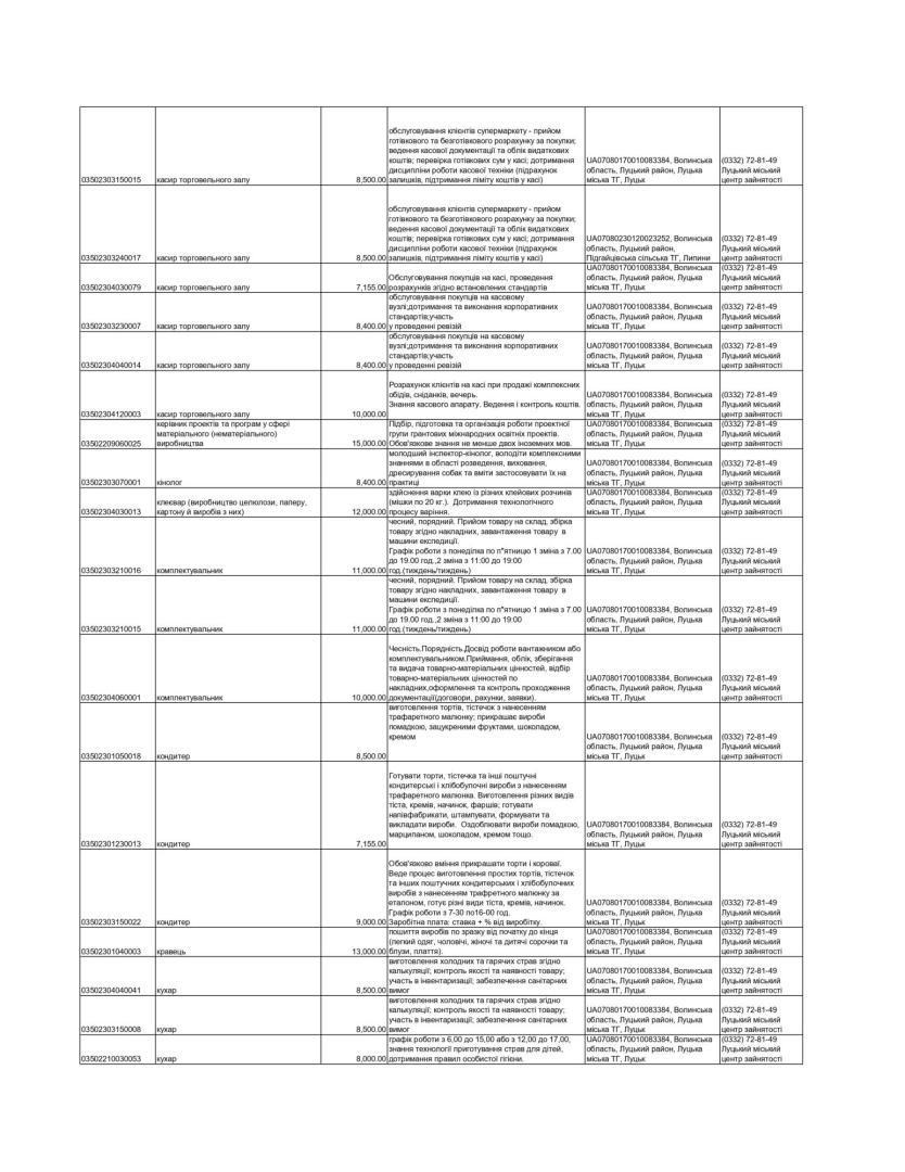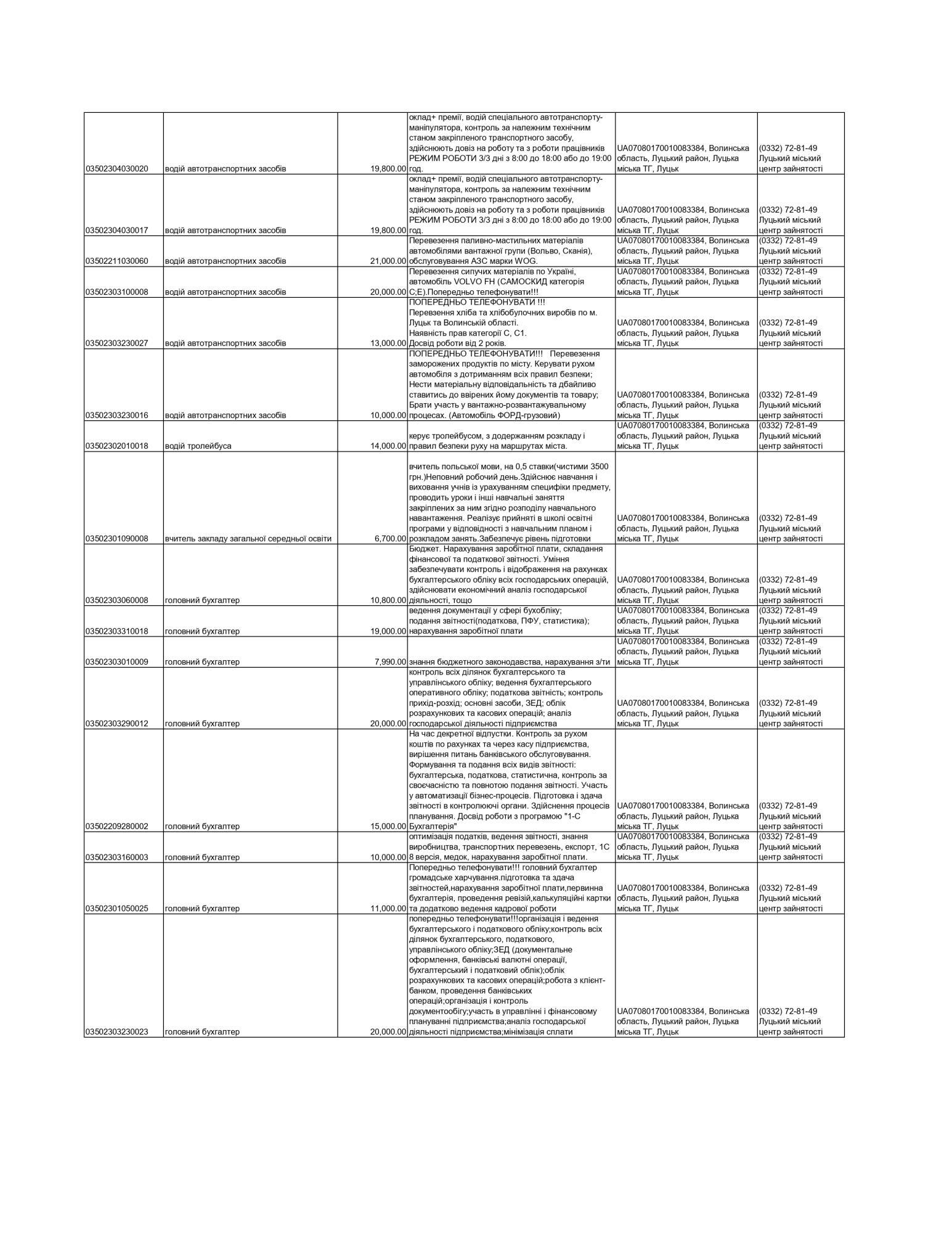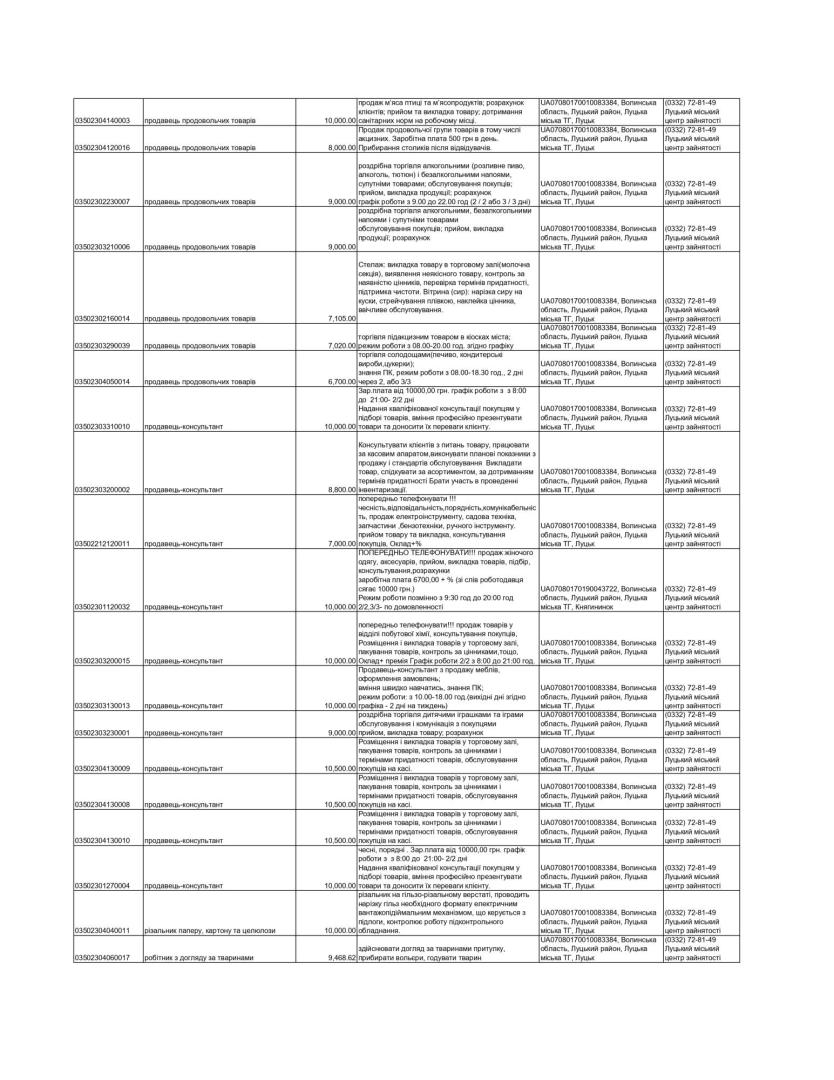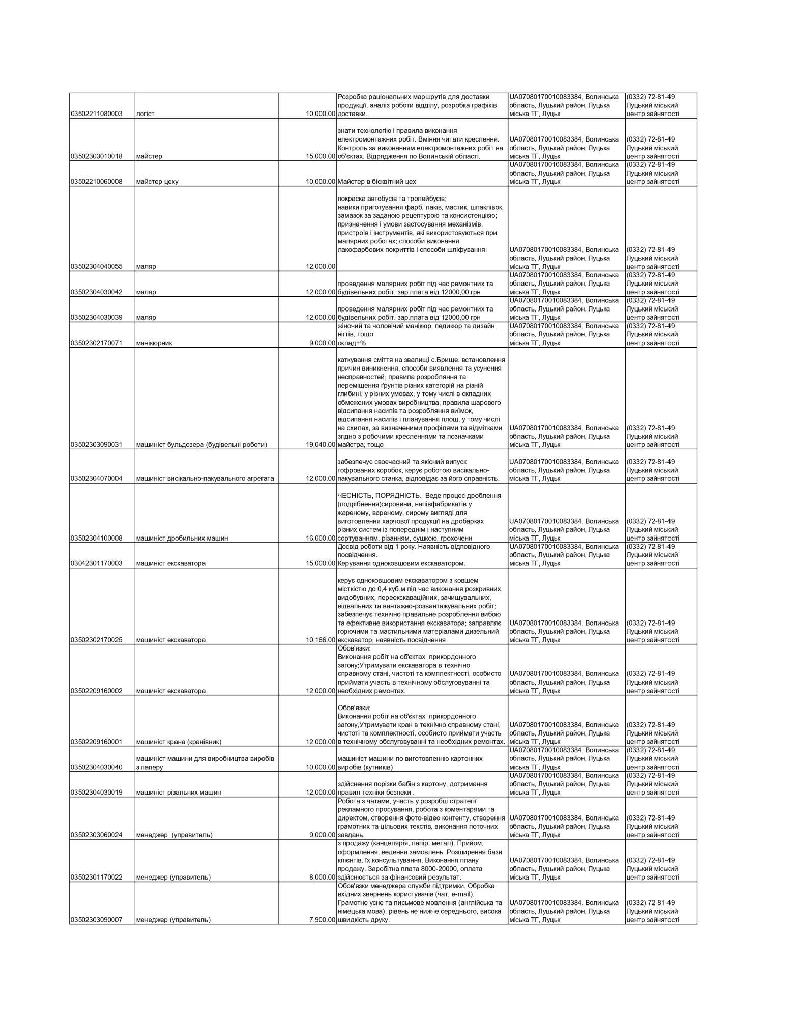 Волинський обласний центр зайнятості інформує про перелік актуальних вакансій, зареєстрованих у Луцькій філії. Із переліком вакансій та відомостями щодо заробітної плати можна ознайомитися нижче.