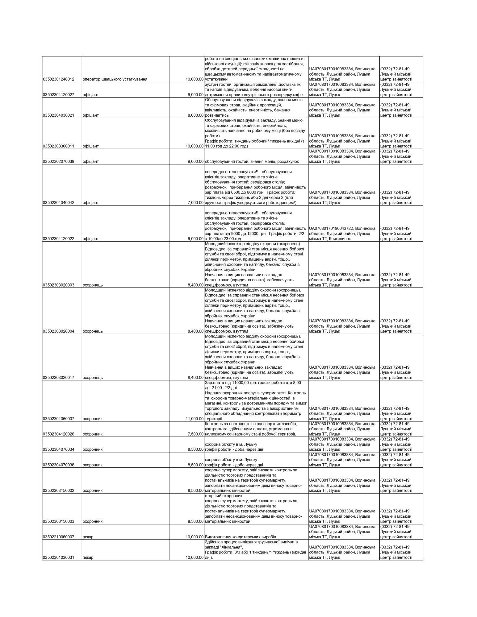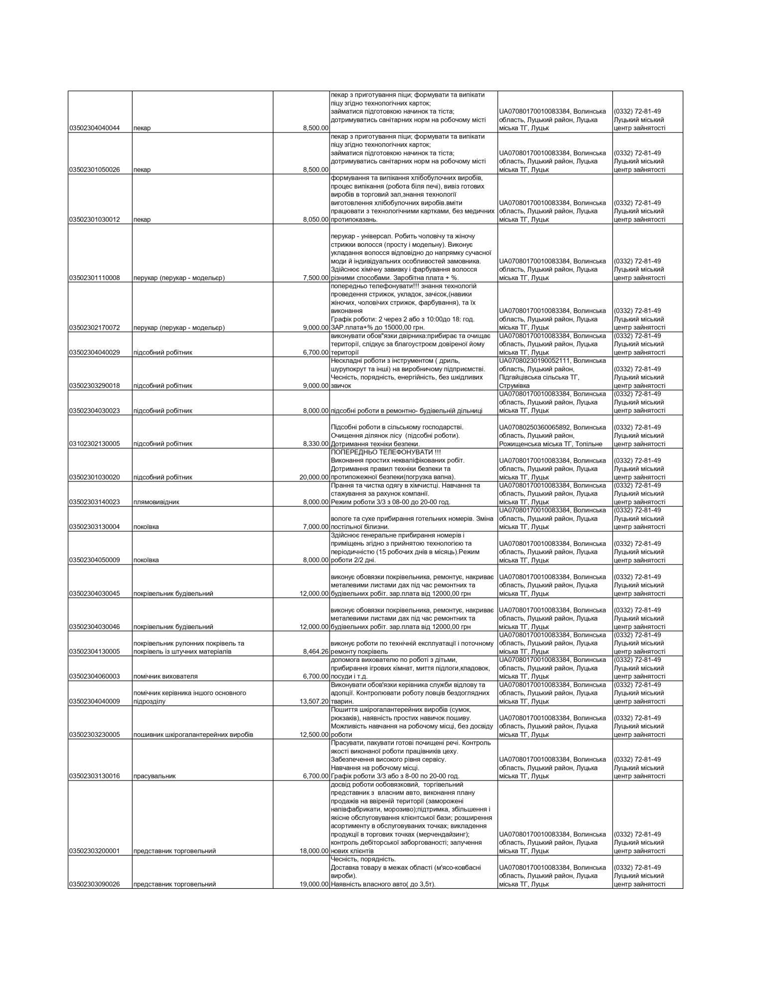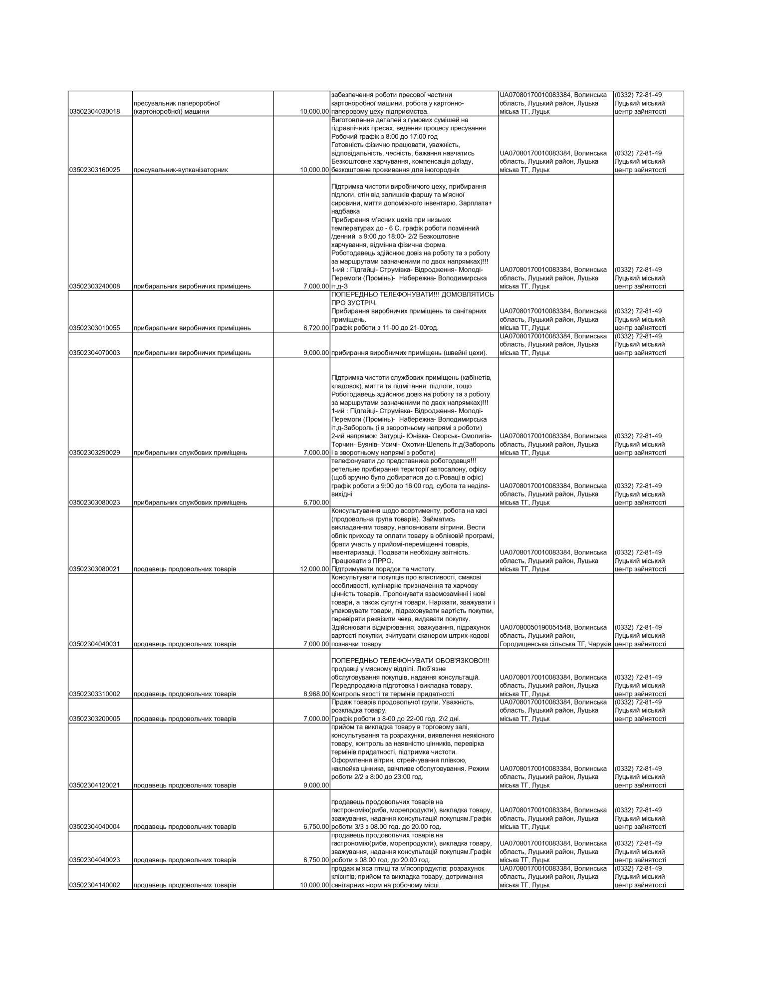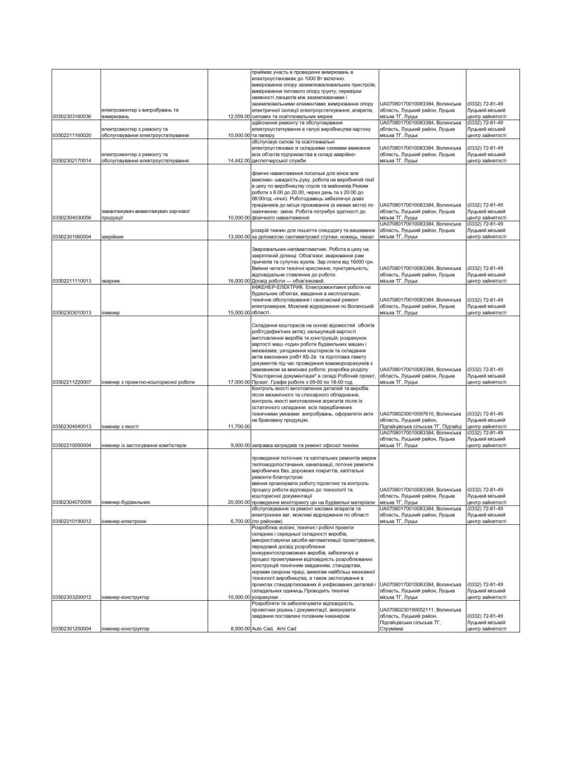 Волинський обласний центр зайнятості інформує про перелік актуальних вакансій, зареєстрованих у Луцькій філії. Із переліком вакансій та відомостями щодо заробітної плати можна ознайомитися нижче.