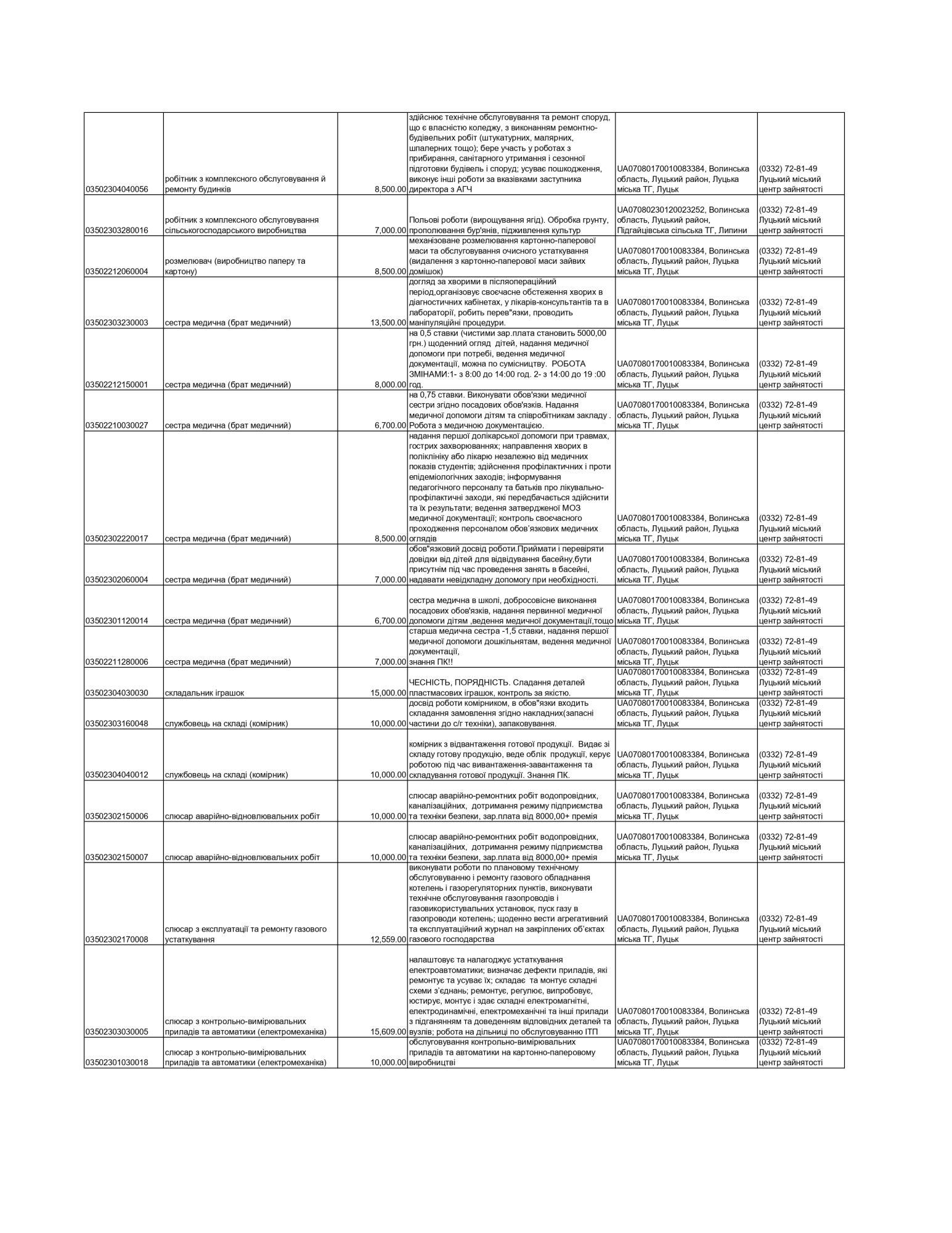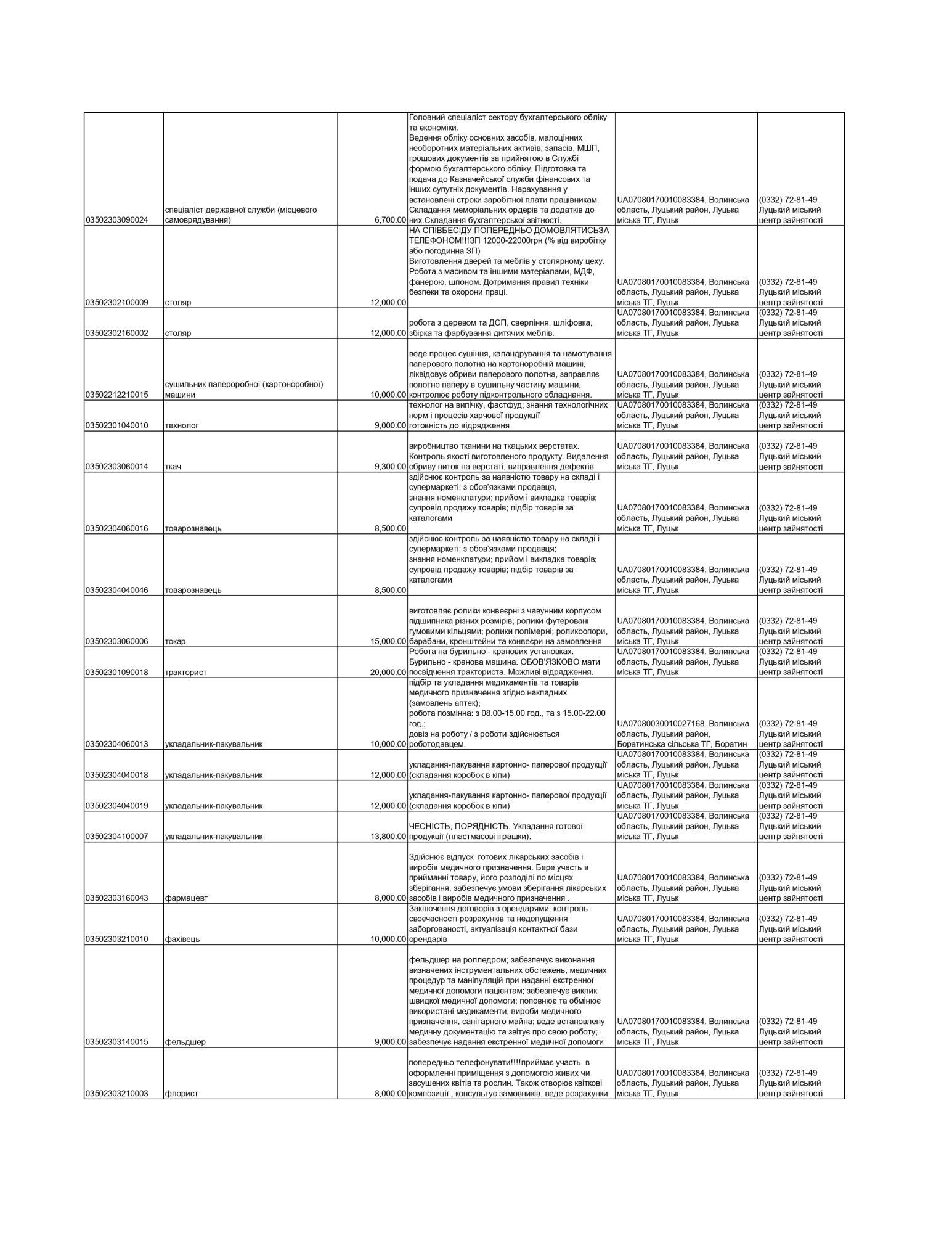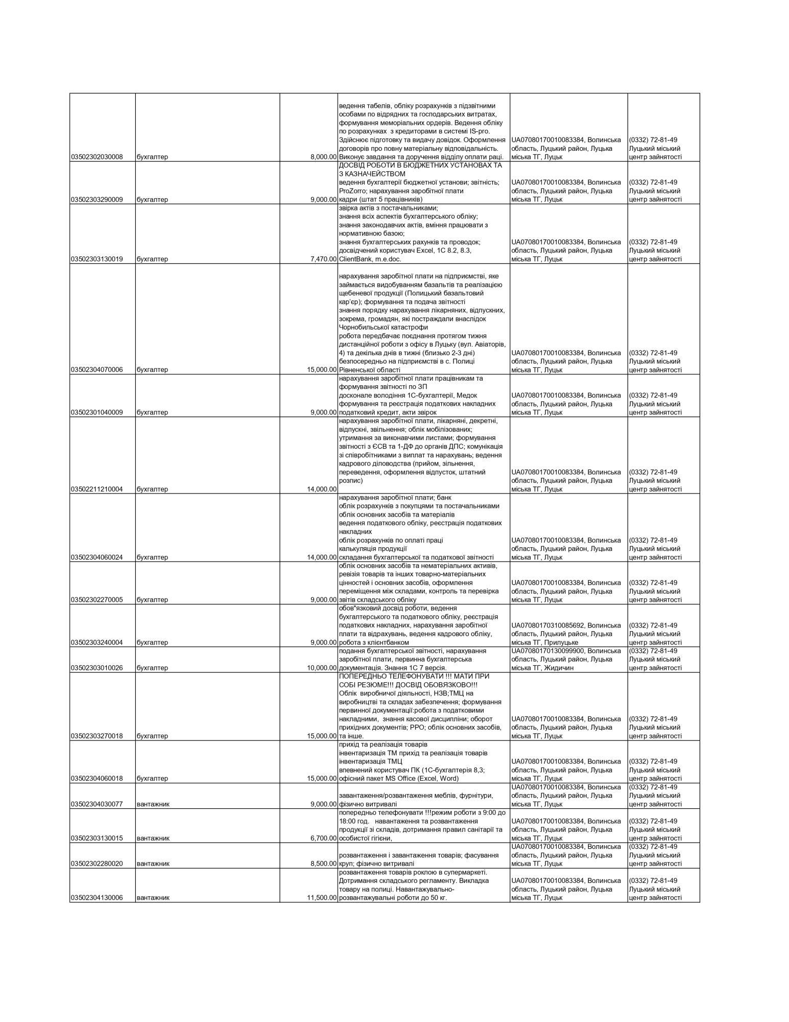 Актуальні вакансії для мешканців громади. ПЕРЕЛІК