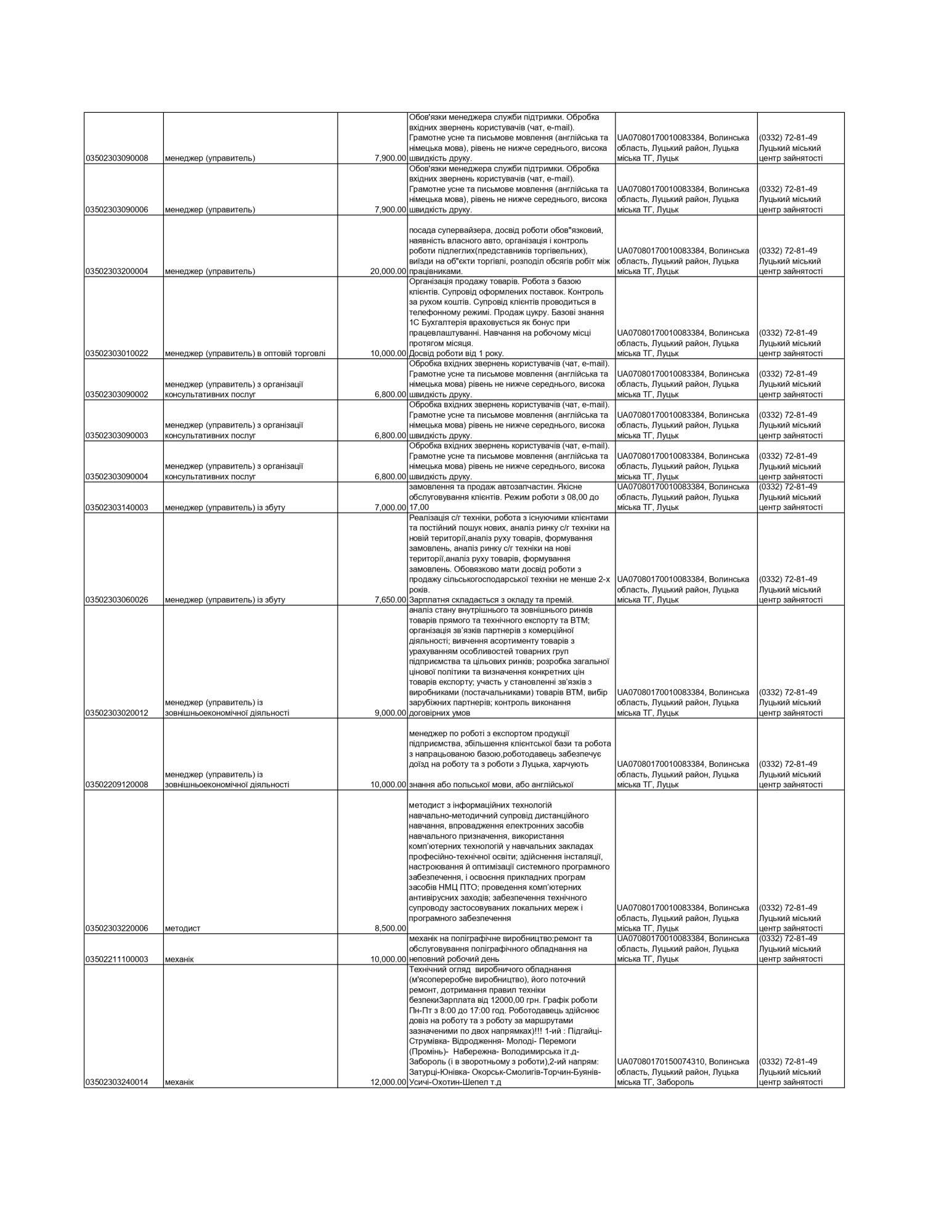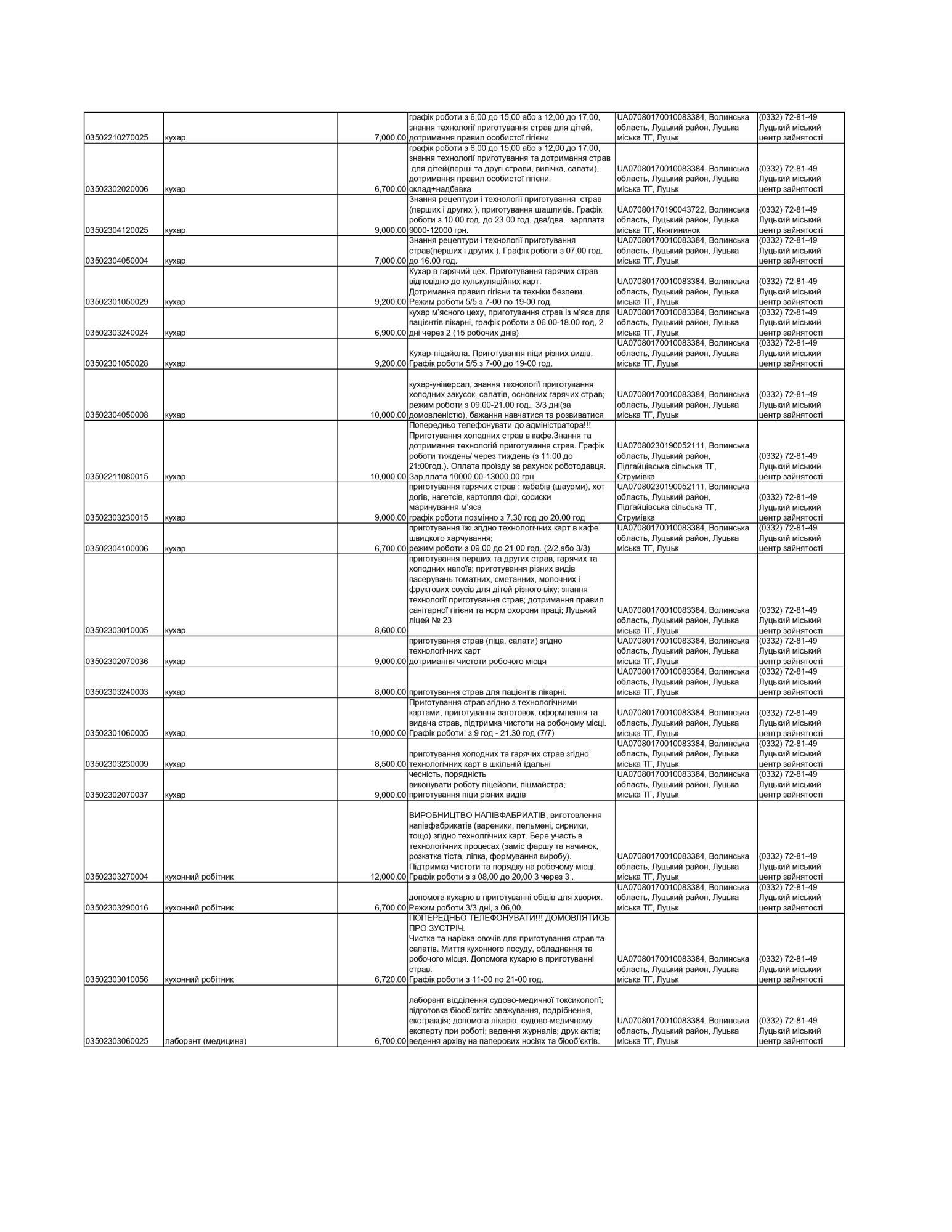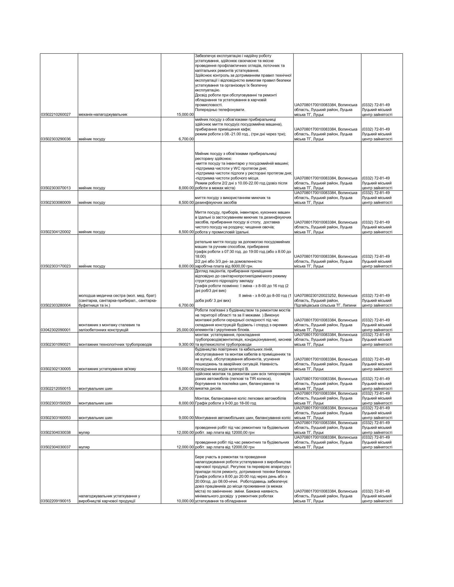 Актуальні вакансії для мешканців громади. ПЕРЕЛІК