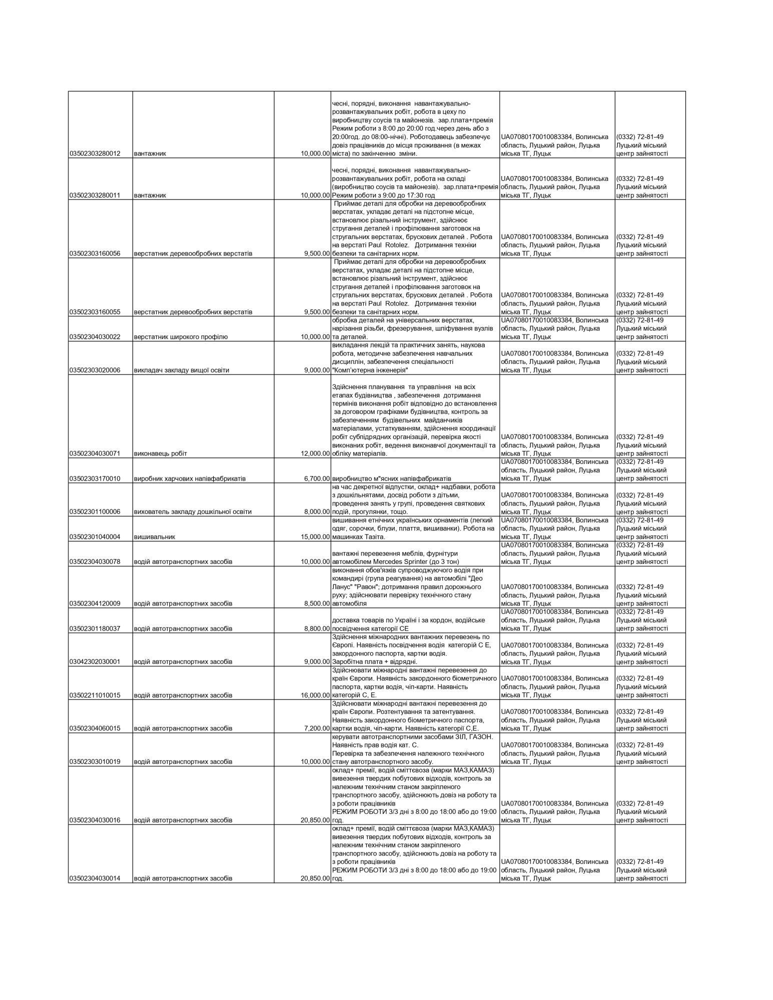 За детальною інформацією звертайтеся до Луцької філії Волинського обласного центру зайнятості, за адресою: м. Луцьк, вул. Сергія Тимошенка, 2, телефон для довідок: (0332) 72-72-58, (0332) 72-13-74.