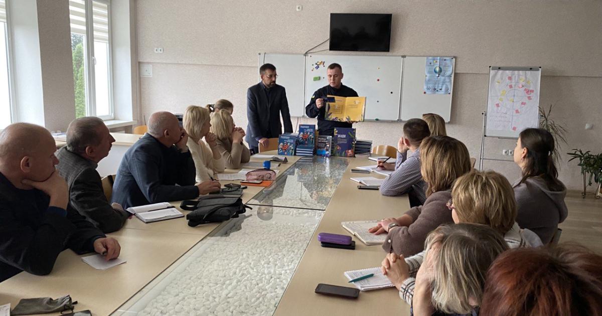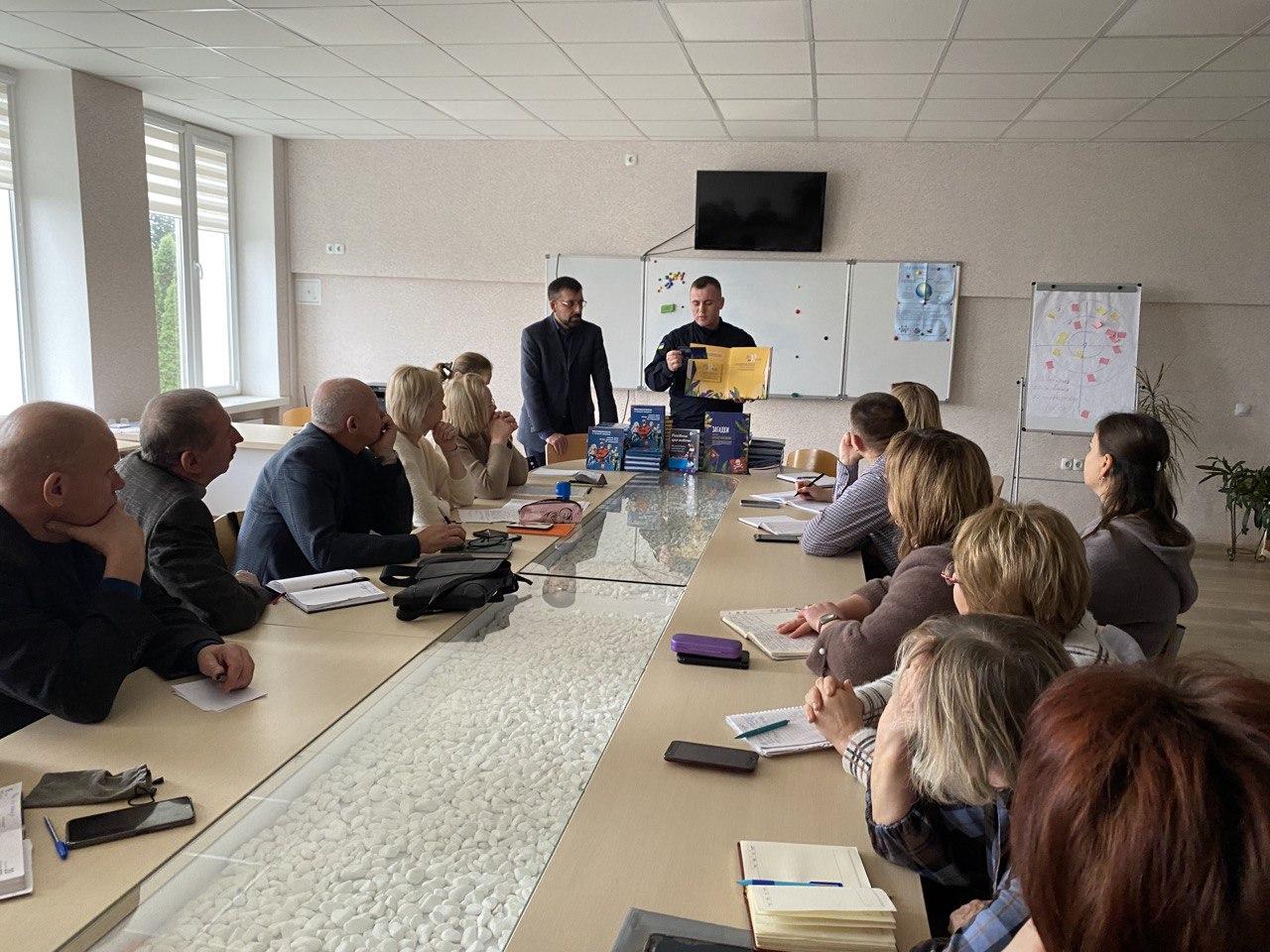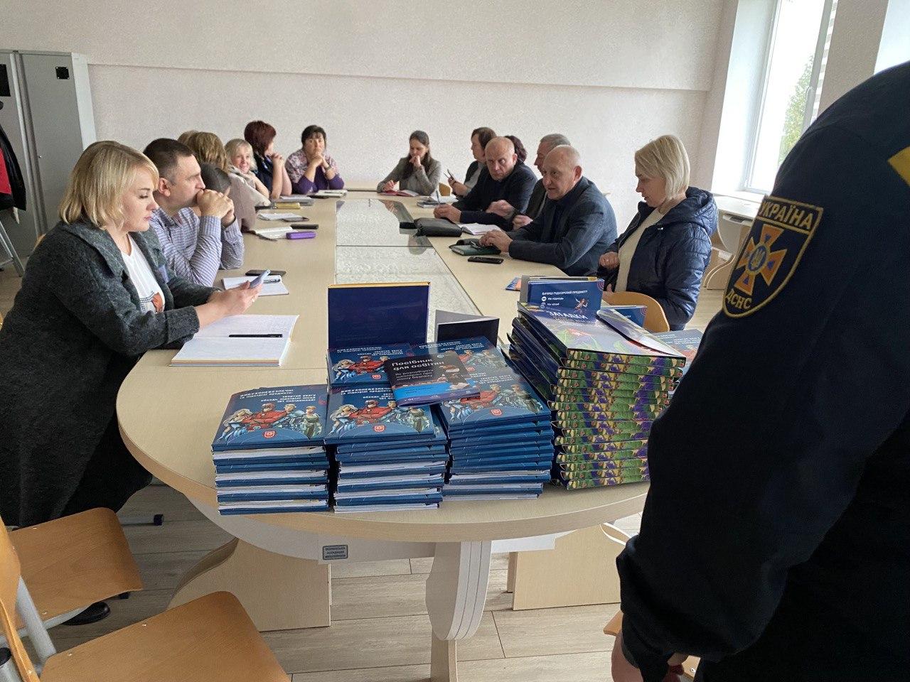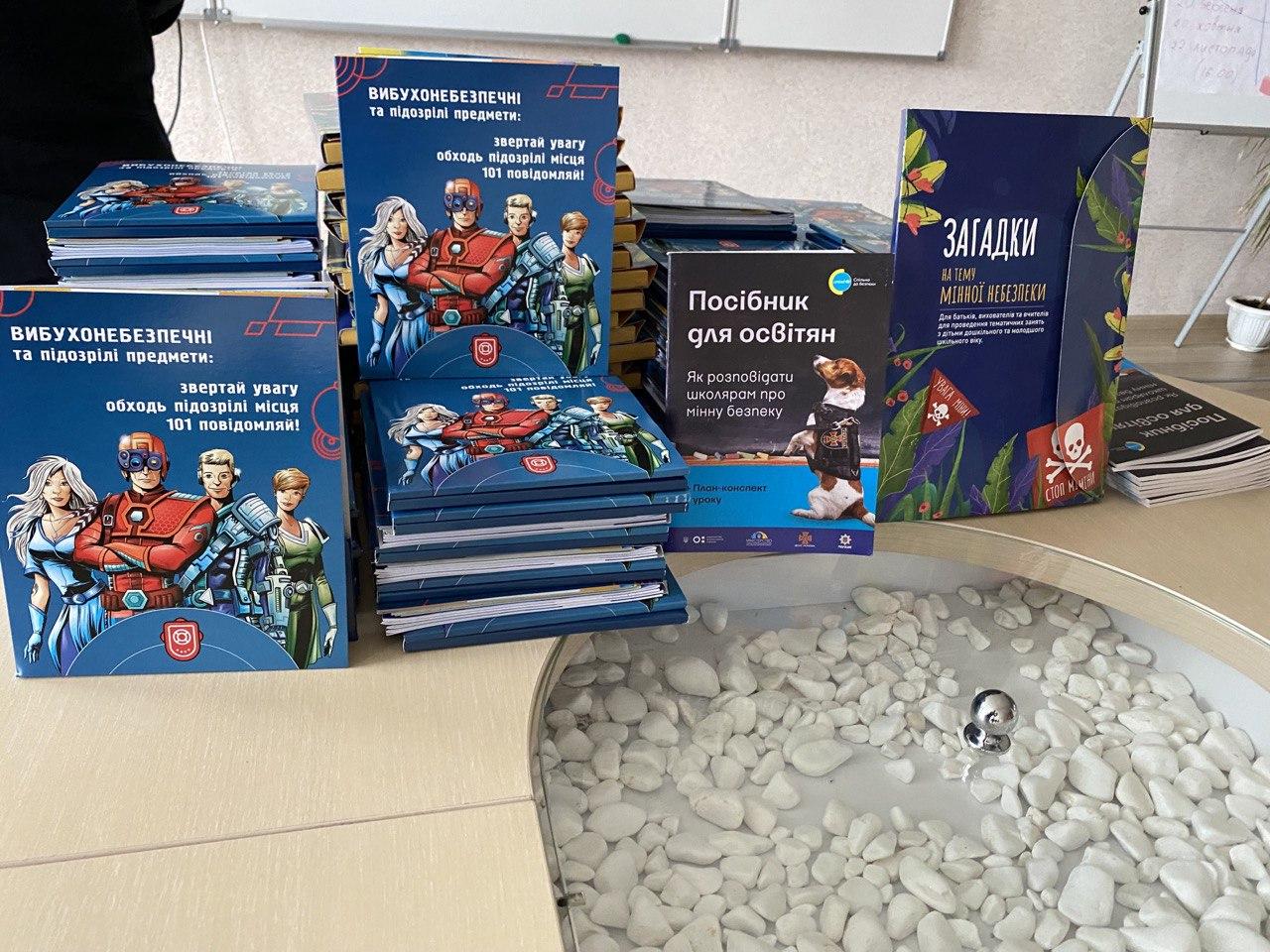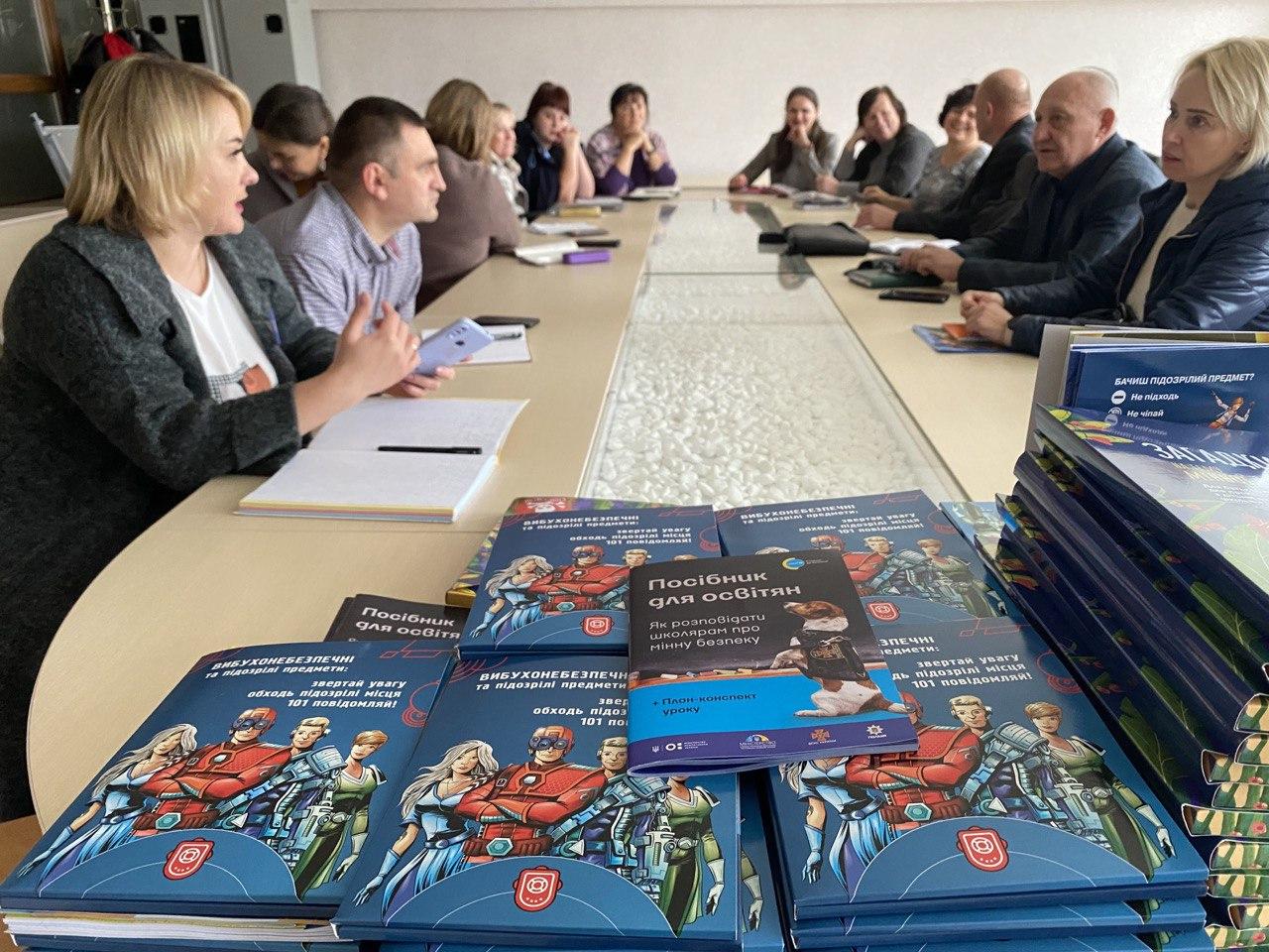 Фахівці ДСНС провели інструктаж щодо дій освітян у разі сигналу «Повітряна тривога» та роз’яснили основні дії під час виявлення вибухонебезпечних предметів. По завершенню заходу керівництву закладів освіти презентували тематичні пам'ятки застережливого характеру та вручили подарунки для дітей, які отримали за сприяння UNICEF.