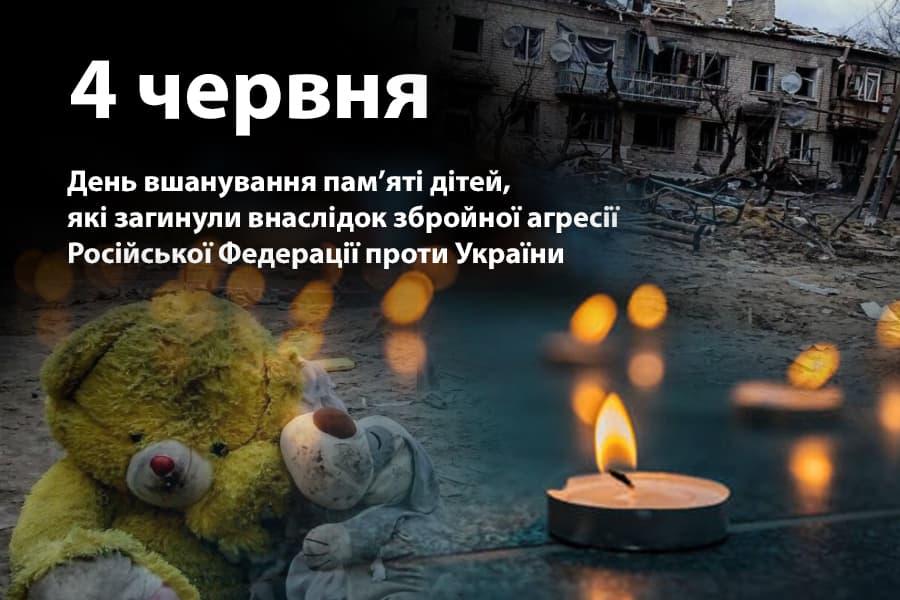 Сьогодні, 4 червня, Україна схиляє голову в пам'ять про дітей, які стали жертвами збройної агресії Російської Федерації. Цей день є важливим нагадуванням про невинні життя, які були обірвані через воєнні злочини проти цивільного населення.