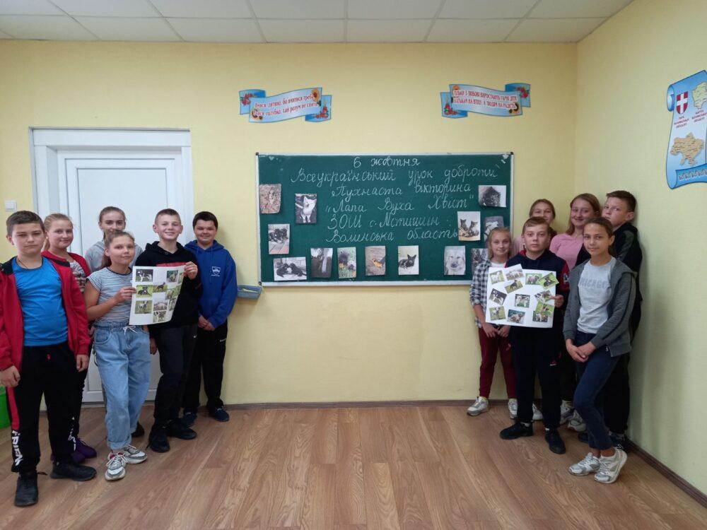Долучитися до свята усіх зоозахисників вирішили і у Мстишинській школі. Для учнів провели Всеукраїнський урок доброти, головною темою якого стало гуманне ставлення до тварин. Та найбільше до вподоби школярам прийшовся тематичний фотофлешмоб. Діти зробили підбірку фото зі своїми домашніми улюбленцями та розповіли цікаві історії про чотирилапих: звідки вони з’явилися, скільки років уже живуть поруч, чим вони особливі, за що їх люблять.