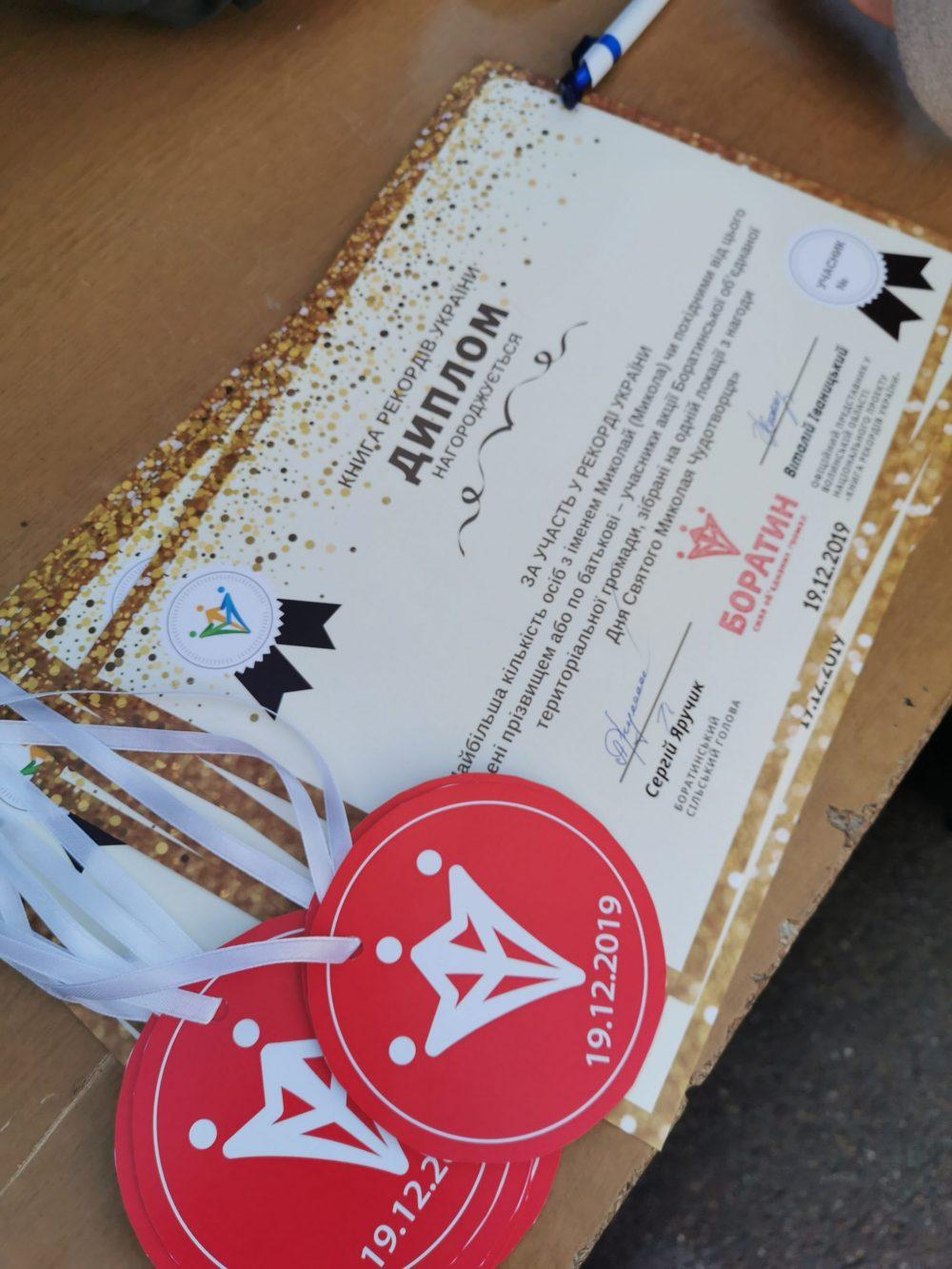 «Родзинкою» свята стало встановлення нового рекорду України. Офіційний представник Книги рекордів України на Волині, заслужений діяч мистецтв Віталій Іваницький зафіксував новий рекорд – 287 Миколаїв (осіб з іменем Микола чи похідними від цього імені прізвищем або по батькові) – учасників акції Боратинської об’єднаної громади, зібрано на одній локації з нагоди Дня Святого Миколая Чудотворця.