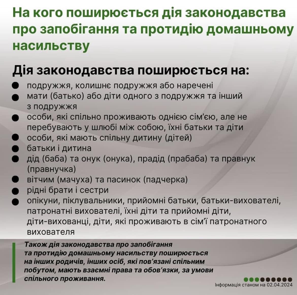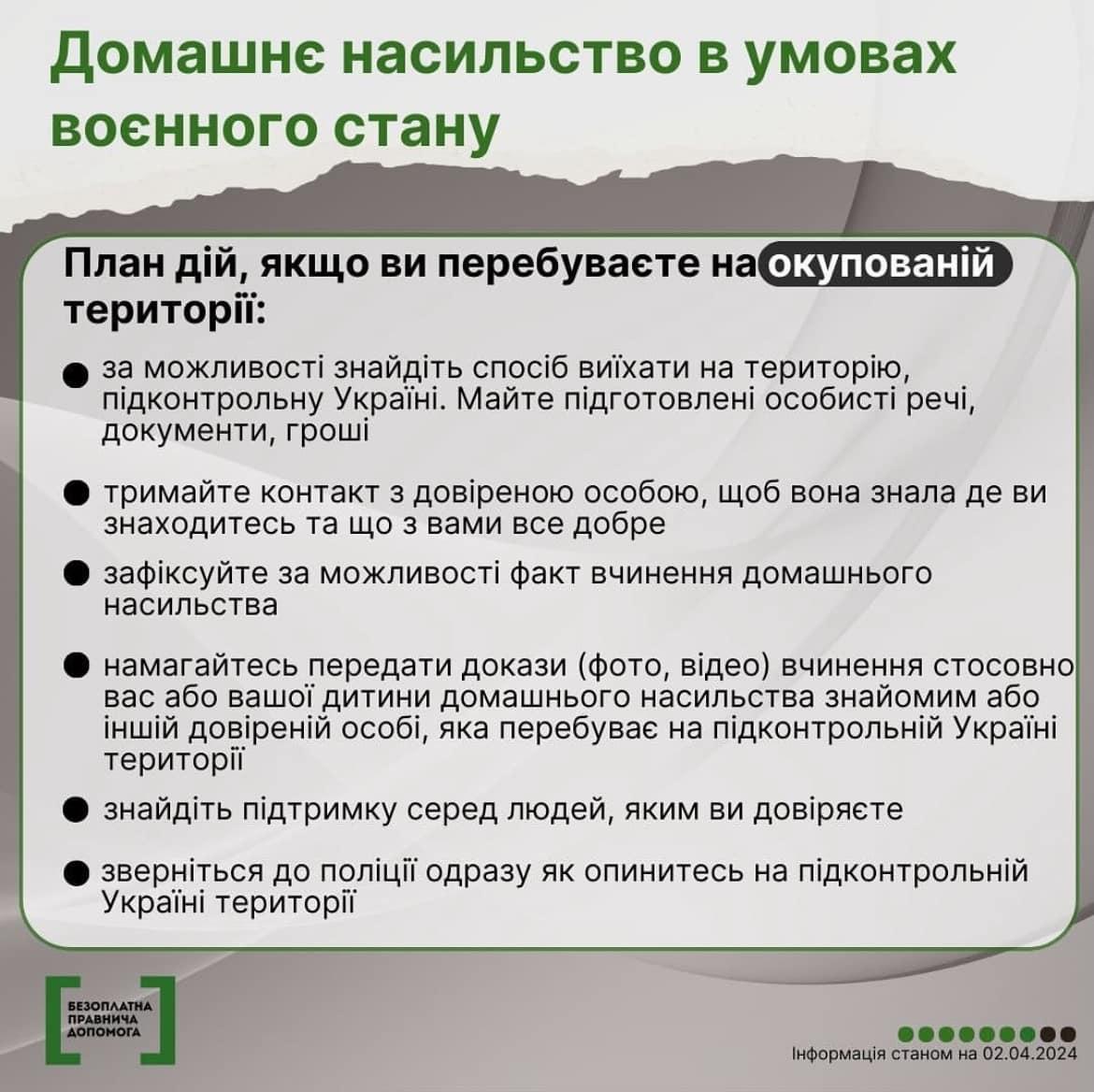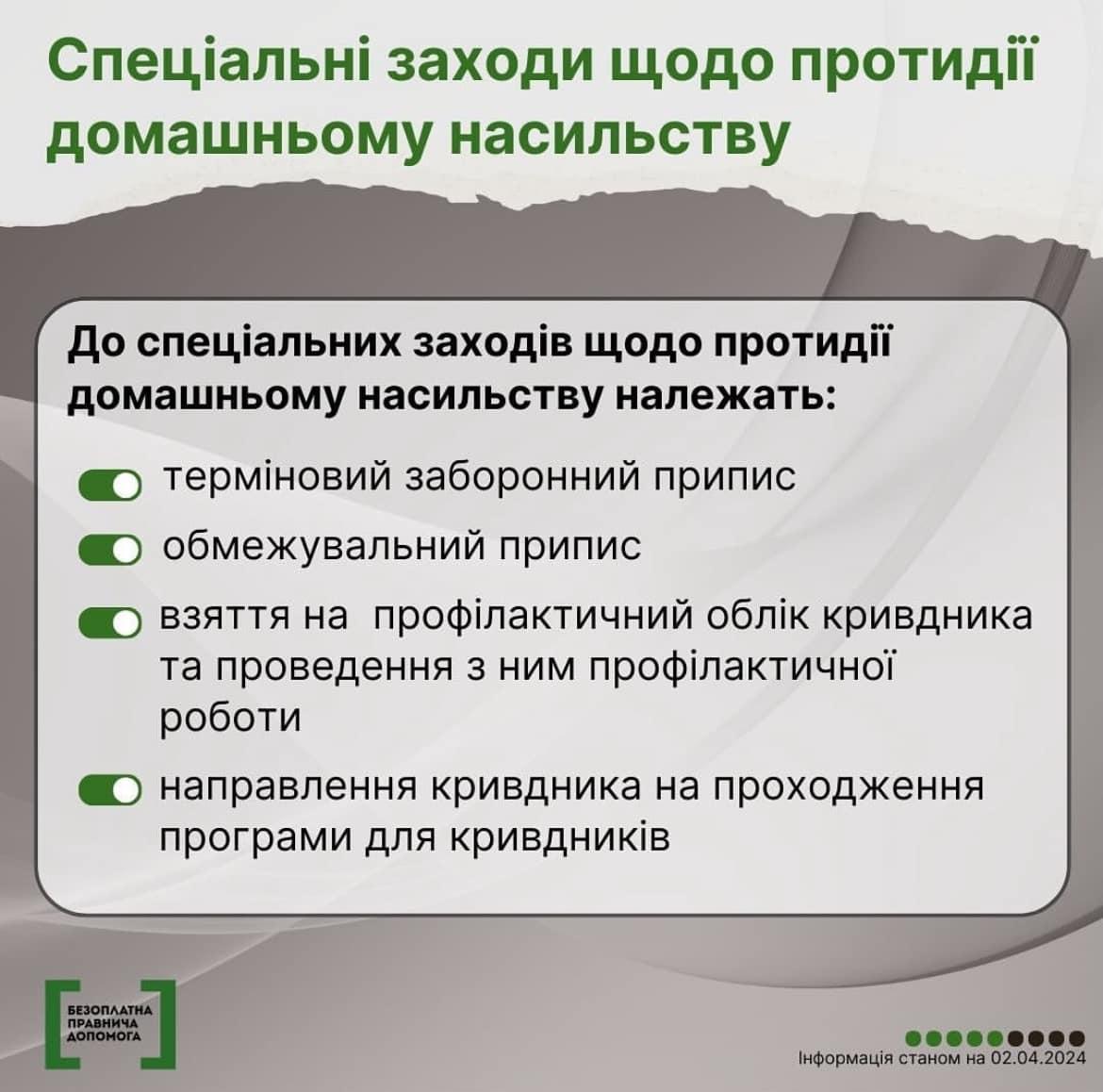 Дізнайтеся більше про види домашнього насильства та відповідальність за вчинення будь-якого з них на сайті Безоплатної правничої допомоги.