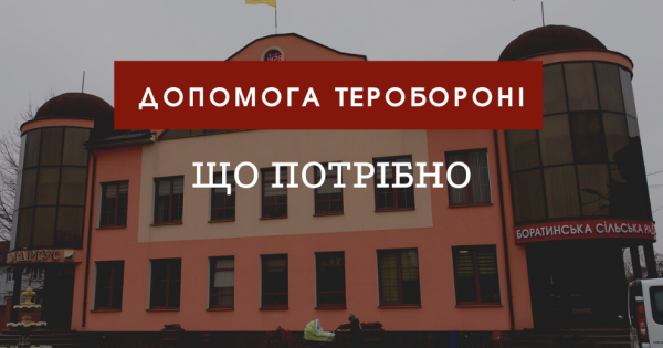 Боратинська громада продовжує збір допомоги для територіальної оборони Луцького району. Звертаємось до усіх мешканців громади, громадських, волонтерських та благодійних організацій з проханням підтримати наших захисників.