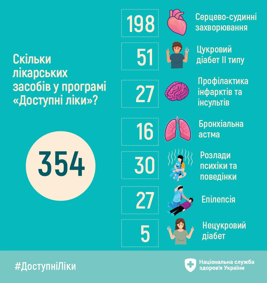 З 1 жовтня «Доступних ліків» стало більше, і тепер до програми реімбурсації включено 354 лікарські засоби. З них: