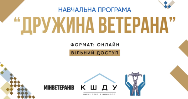 Онлайн програма «Дружина ветерана», спрямована на зміцнення стійкості сімей ветеранів, формування життєзарадності, економічному та соціальному благополуччю. Організаторами курсу є ГО «Київська школа державного управління імені Сергія Нижного», Міністерство у справах ветеранів України та ТОВ «Енергетичне партнерство».