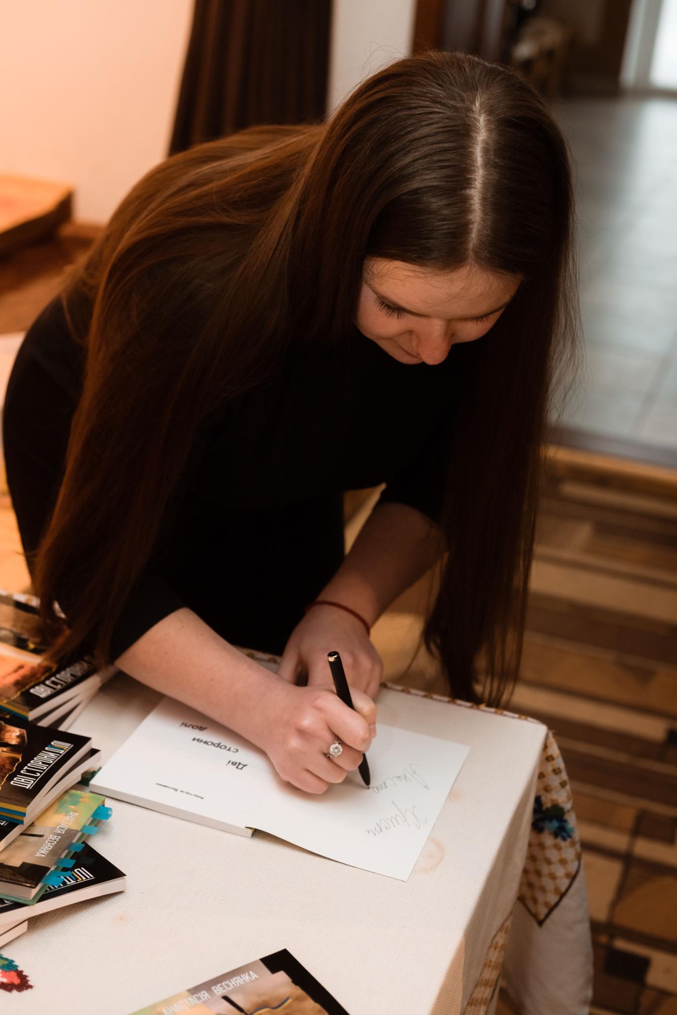 Свій перший літературний доробок Анастасія презентувала у колі друзів, односельчан та шанувальників її творчості. Поетеса розповіла про свій життєвий та творчий шлях, поділилася історією створення та видання першої збірки і, звісно, ж читала поезію. Із уст авторки прозвучали вірші «Боратин», «Україно, повстань!», «Кацапське стадо», «Недостатня русофобія», «Янгол з ЗСУ», «Рідний комбриг».