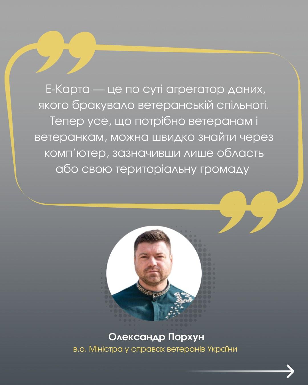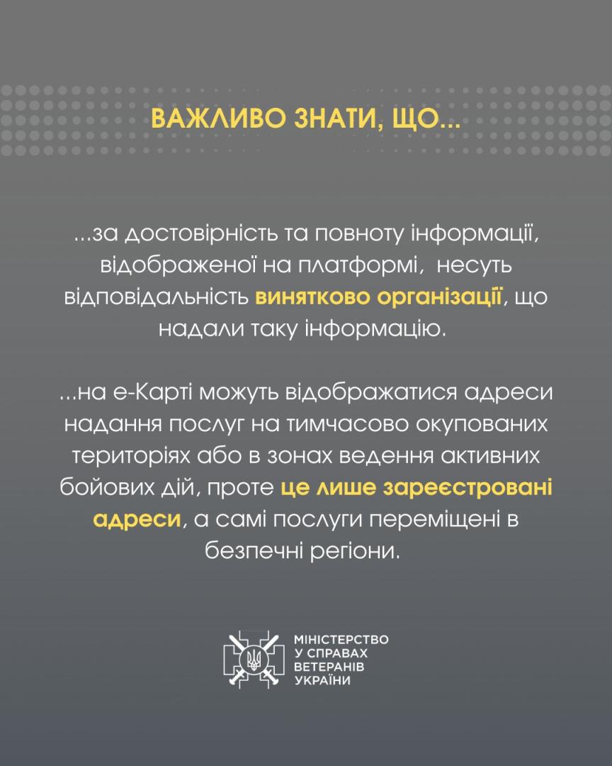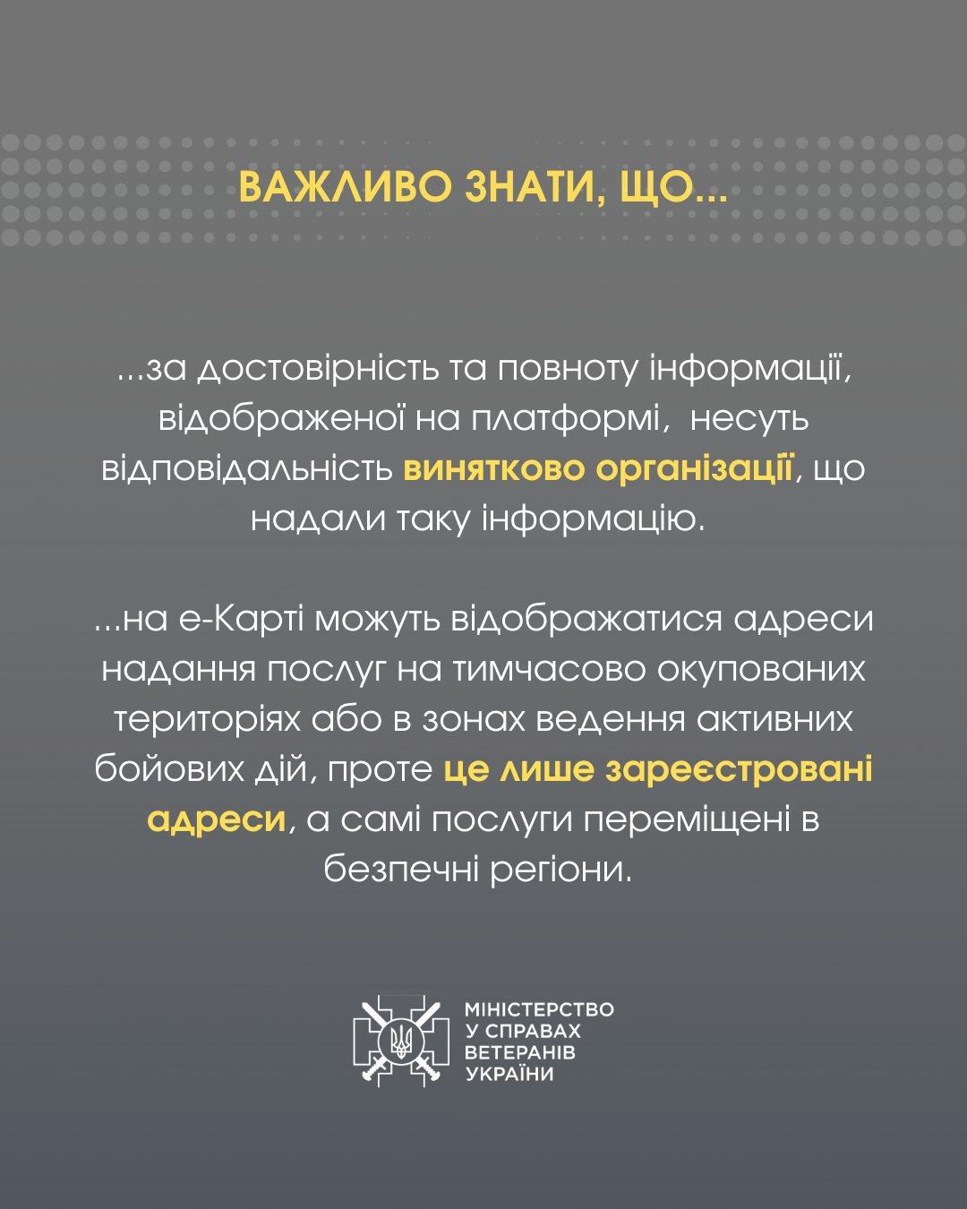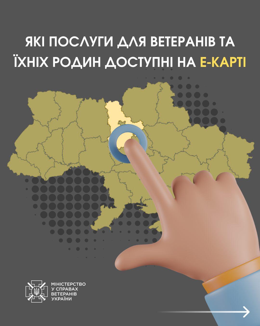 Міністерство у справах ветеранів України спільно з Представництвом Міжнародної організації з Міграції в Україні розробило та запустило е-Карту послуг для ветеранів війни в громадах. Е-Карта доступна на платформі е-Ветеран.