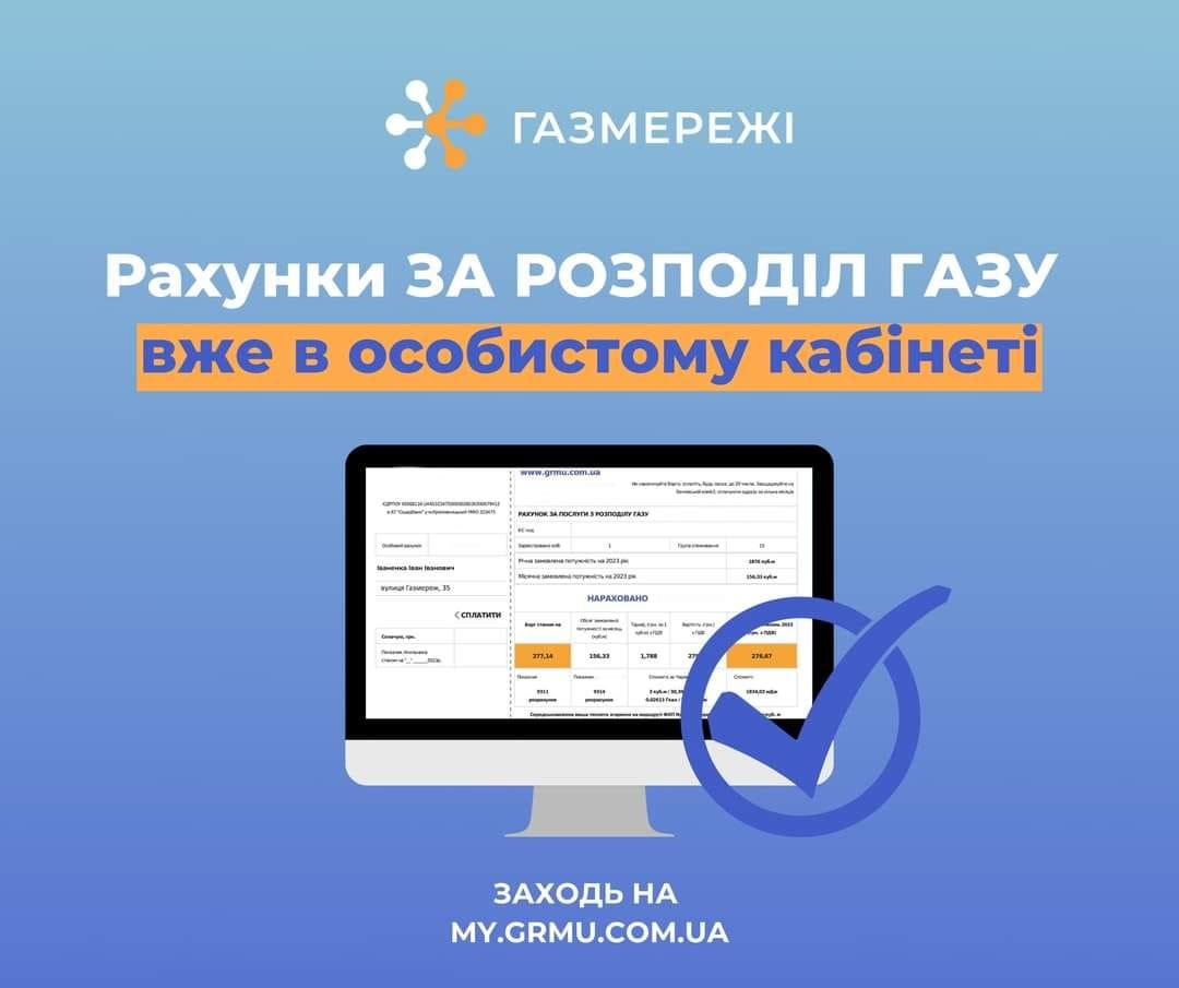 Рахунки за розподіл газу легко та швидко можна завантажити онлайн в особистому кабінеті «ГАЗМЕРЕЖІ» https://my.grmu.com.ua/login.