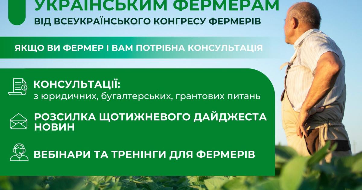 У межах програми підтримки фермери зможуть отримати низку послуг. Насамперед, це консультації від фахових спеціалістів з юридичних, бухгалтерських і грантових питань. Окрім того, Всеукраїнський конгрес фермерів безкоштовно надаватиме інформаційні послуги розсилки щотижневого аналітичного дайджесту з актуальними новинами, законодавчими змінами в агросфері, грантовими можливостями, змінами щодо ведення бухгалтерського обліку, подачі податкової звітності тощо.
