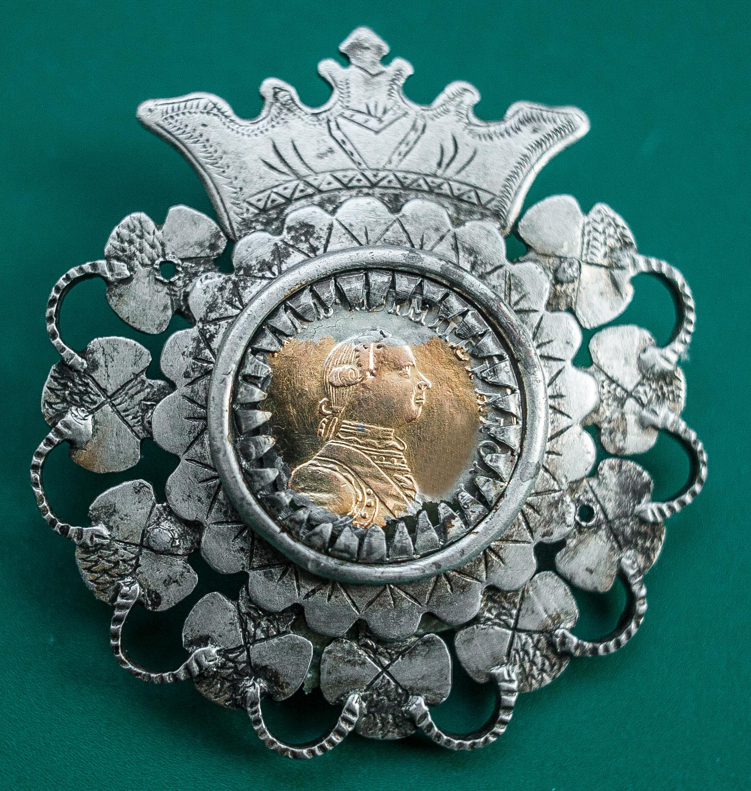 Не менш унікальна прикраса, яку носили волинянки - мендель. Це таке намисто на вовняній тасьмі, між ними закріплені маленькі штамповані двохсторонні образки овальної форми, і чотири скляні зелені намистини.