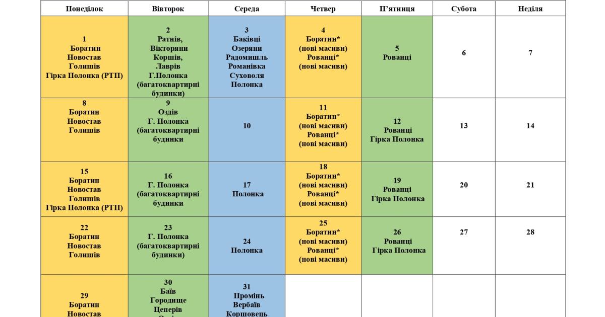 КП «Боратин» інформує про графік вивезення твердих побутових впродовж грудня.