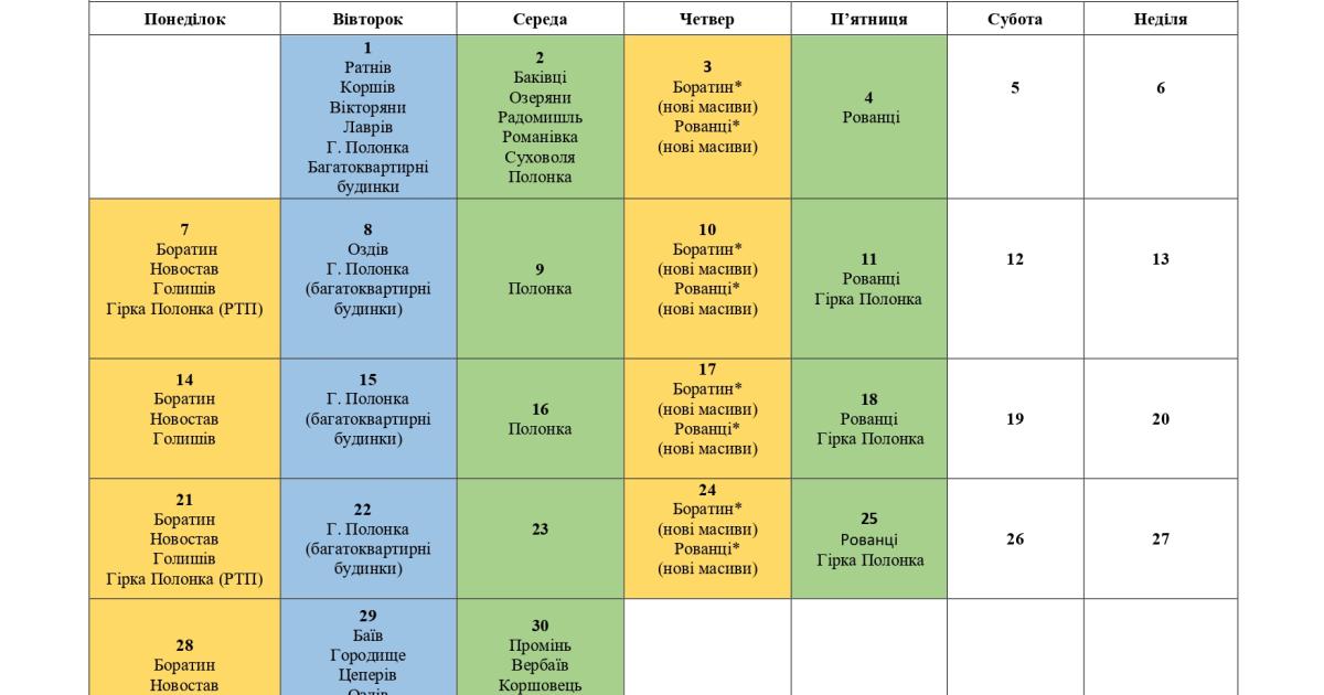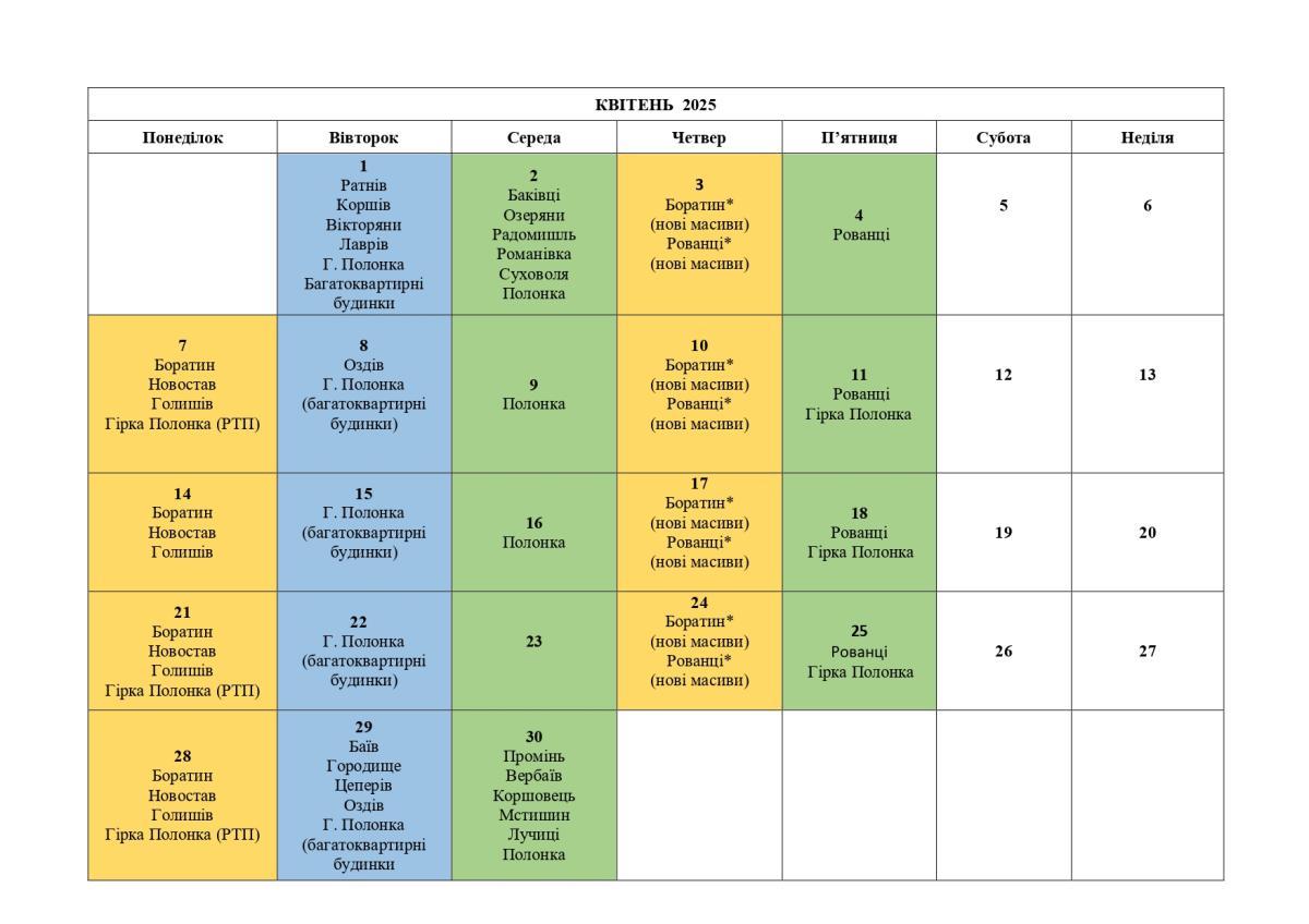 Графік вивезення сміття у Боратинській громаді на квітень