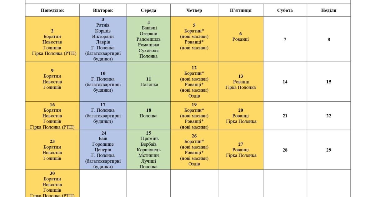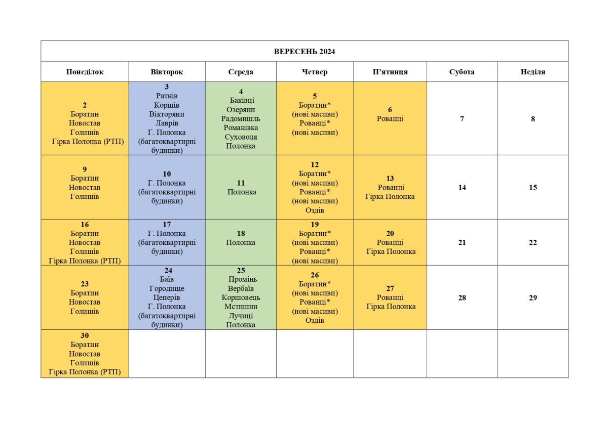 Графік вивезення сміття у Боратинській громаді на вересень
