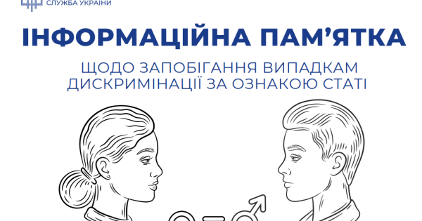 Національна соціальна сервісна служба України підготувала інформаційну пам’ятку щодо запобігання випадкам дискримінації за ознакою статі.
