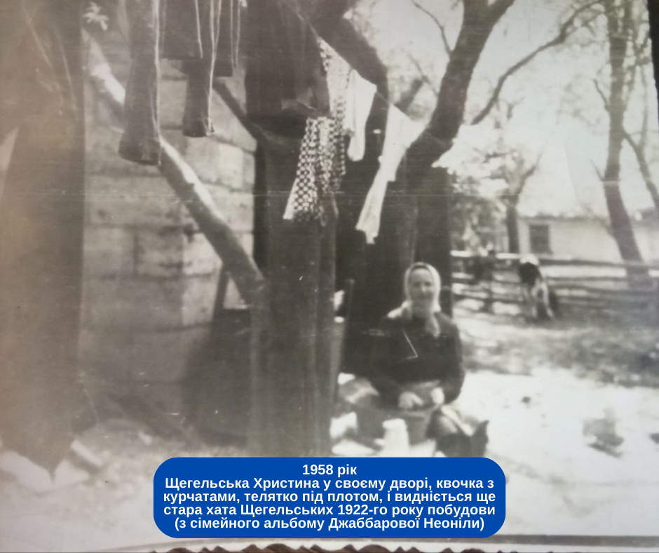 Навпроти хати Щегельських була парівка. Там на початках колгоспу молотили зерно, а у самій хаті попросили зробити молочарню – пункт прийому молока, яке збирали з людей після війни. У кого не вистачало на решту, купляли масло і здавали за молоко.