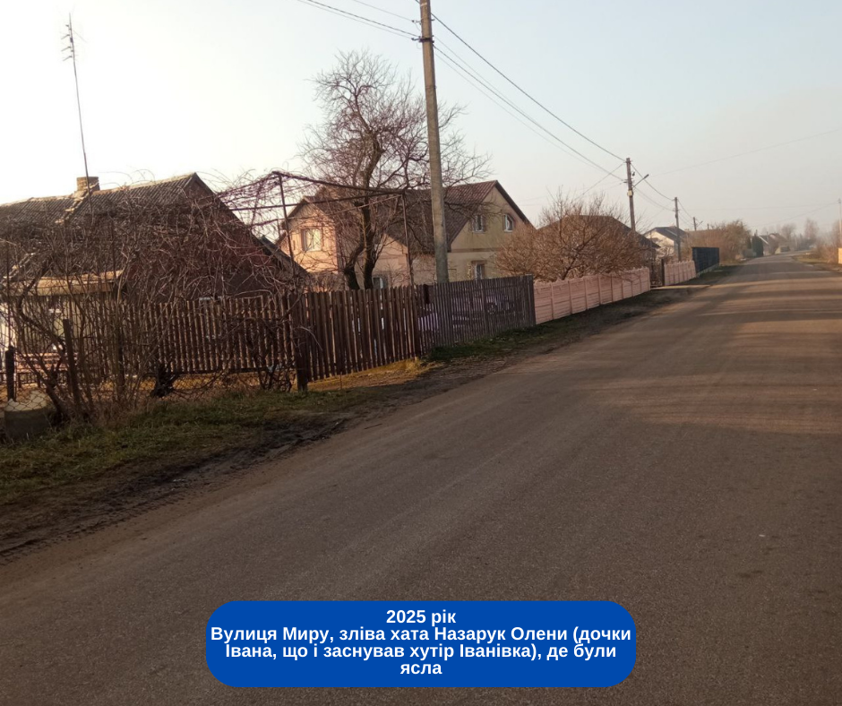Корній Щегельський (уродженець села Гірка Полонка) удвох із сином Нечипором та тестем Оксентієм Кривичем викопали великий рів, глибоченький та довжиною більше як 200 метрів. Довкола нього позабивали кілки із верби (тож цим вербам, що по вулиці Вербовій, більш як 100 років. Як дідусь Нечипор казав: «Верби, то для саду сорочка»), натягнули дріт, щоб худоба із панського вигону не йшла в город (після війни на цьому вигоні любили гратися помірчанські діти). Саме цей рів трошки підкопали біля самої хати німці і зробили з нього собі окоп, а жителів Іванівки вигнали в Баїв. Це була їхня, так звана, евакуація. Коли німці відступили, люди повернулися додому. Хата Щегельських залишилась ціла і неушкоджена. Постраждала тільки пасіка, адже німці забрали мед разом з рамками.