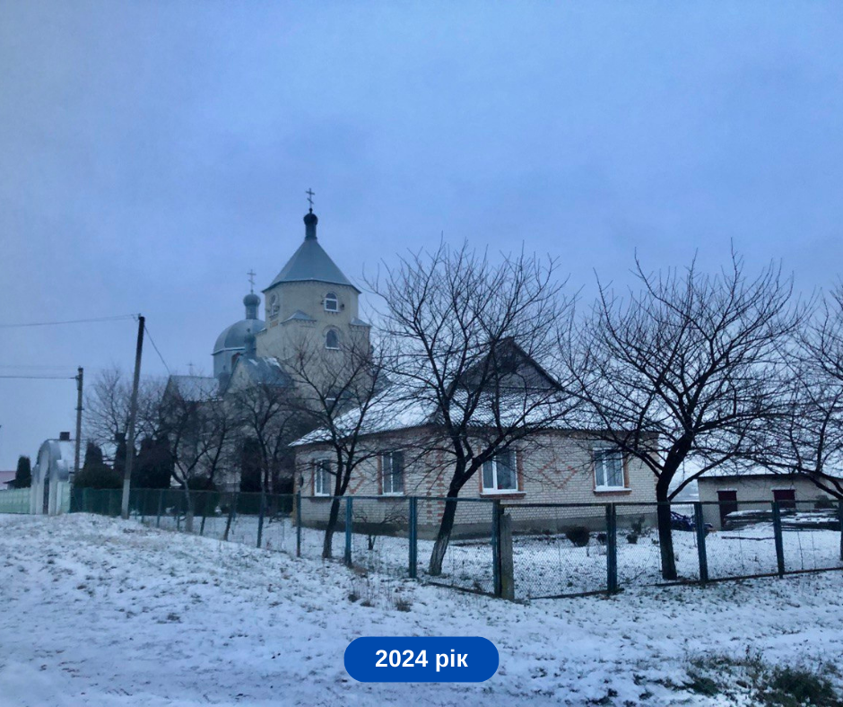 Новенька церква стояла недалеко від школи. У липні 1943 року, коли було спалене село, згоріла і церква, і школа. Тоді діти ходили навчатися до хати Третяка Фільона, потім до Скуби, а згодом навчались у Карп'юк Єви.