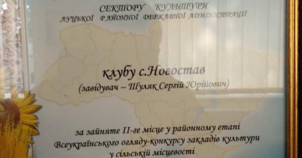 Приємною звісткою стала почесна грамота, вручена завідувачу клубу села Новостав Шуляку Сергію Юрійовичу за зайняте II місце у районному етапі Всеукраїнського огляду-конкурсу закладів культури у сільській місцевості.
