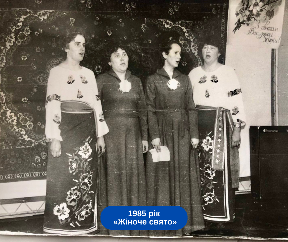 Чого тільки не вигадували керівники закладу аби подарувати гарний настрій, створити затишок і комфорт. До речі, про затишок. У 1985 році завідувач клубу, Васечко Галина Михайлівна, організувала фольклорний колектив. Готуючи свято для жінок, вирішила прикрасити сцену – і чим би ви думали? Імпортним товаром, який на той час було дуже важко дістати. «Ковйор» – так називали в народі килим, який Галині Михайлівні вислала «братиха» з Німеччини, і саме він став окрасою сцени під час заходу.