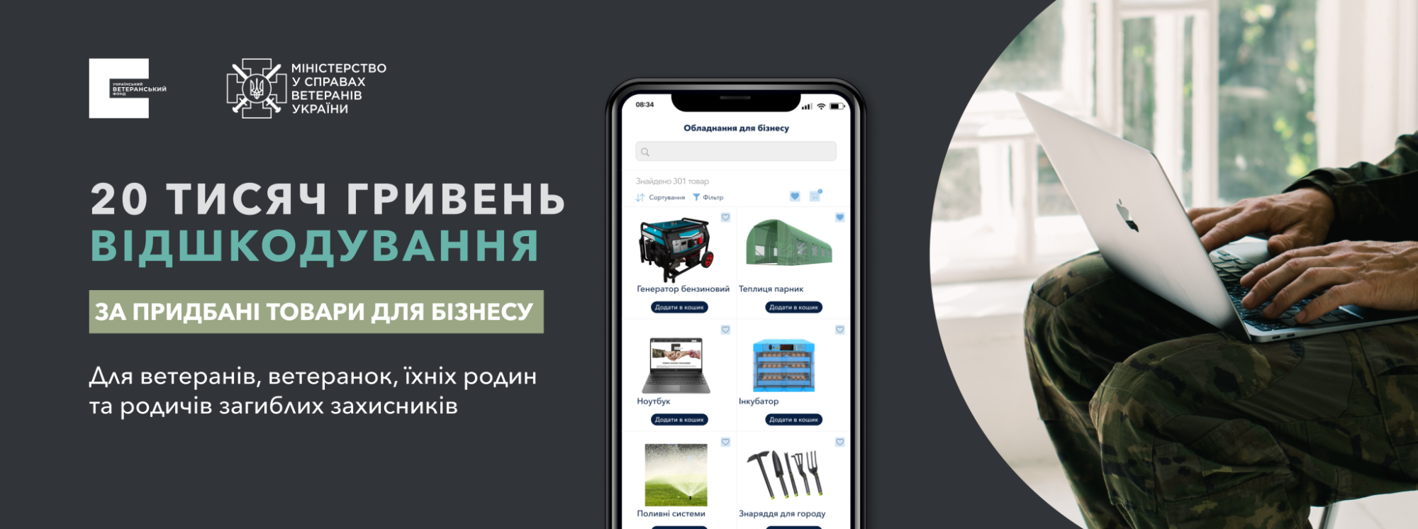 Український ветеранський фонд Мінветеранів продовжує підтримувати розвиток ветеранського підприємництва. У межах програми фонд компенсує до 20 тисяч гривень за придбані товари та предмети, необхідні для ведення власної справи.