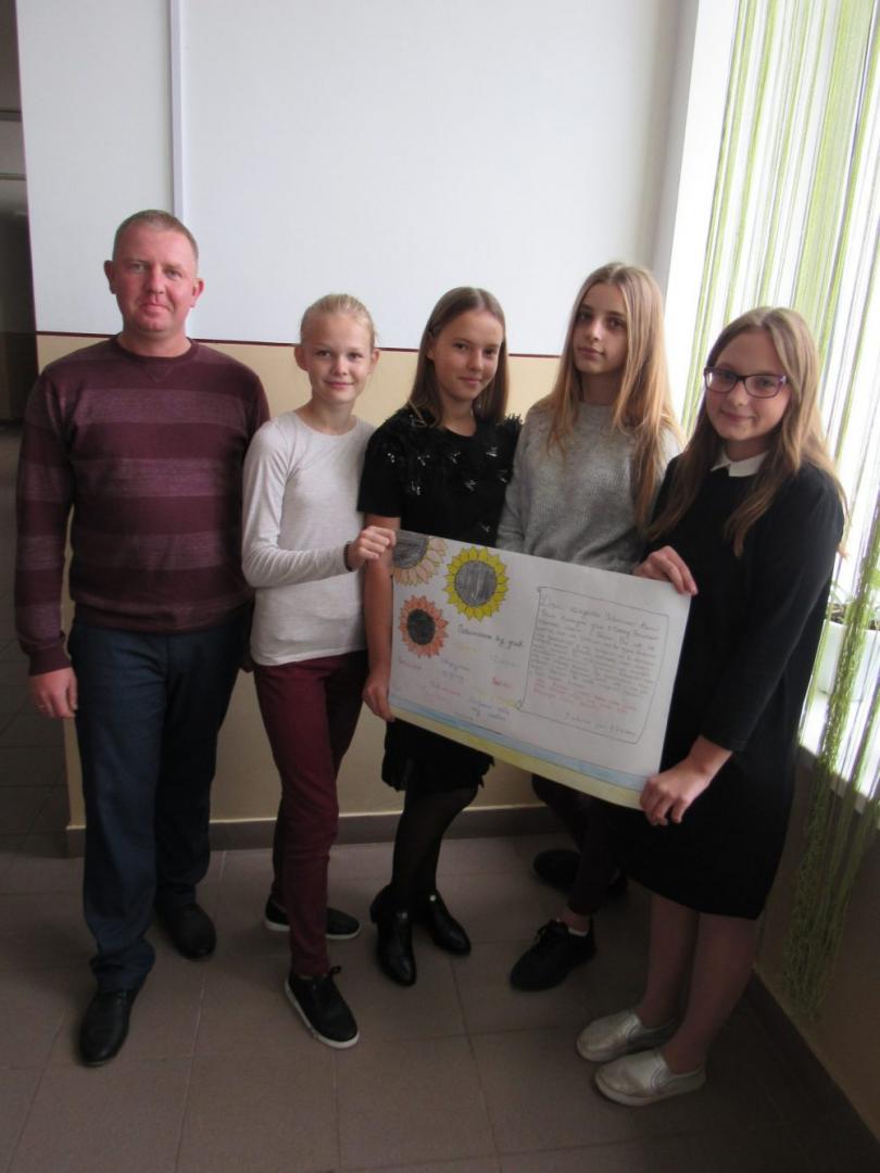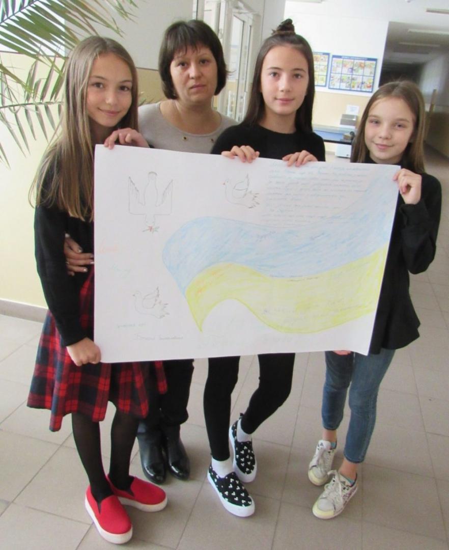 Напередодні Дня захисника України учні школи написали листівки, в яких висловили свою підтримку і вдячність солдатам, що обороняють країну. Щоб підняти бойовий дух військовим, діти від щирого серця малювали мирне небо, сонце і щасливе майбутнє у квітучій батьківщині, й писали зворушливі побажання перемоги та скорішого повернення до своїх рідних.
