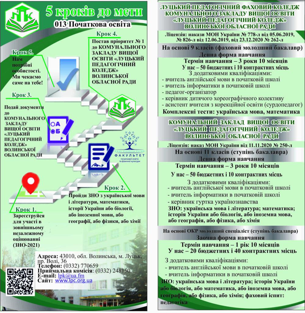 Комунальний заклад вищої освіти «Луцький педагогічний коледж» Волинської обласної ради запрошує на навчання випускників 9, 11 класів – мешканців Боратинської громади та всіх охочих.