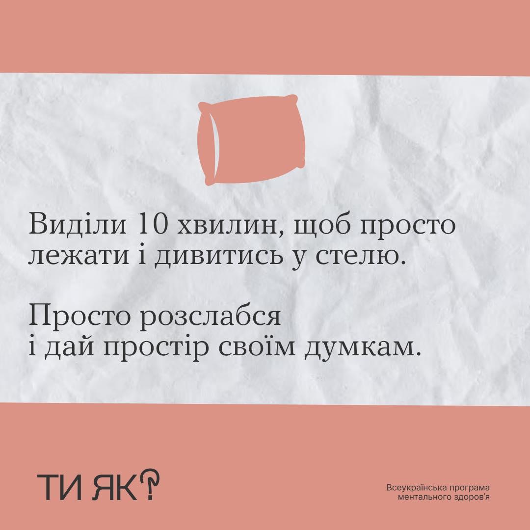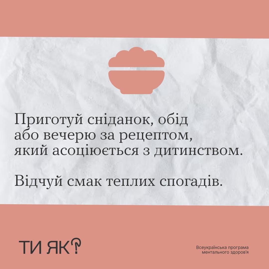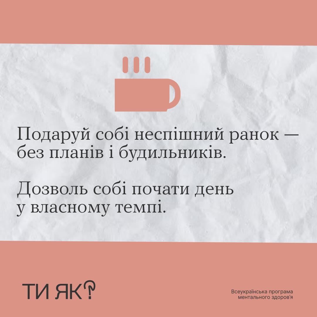 Всеукраїнська програма ментального здоров’я «Ти як?» зібрала ідеї активностей, які допоможуть почуватися краще.