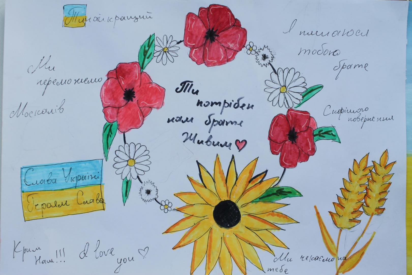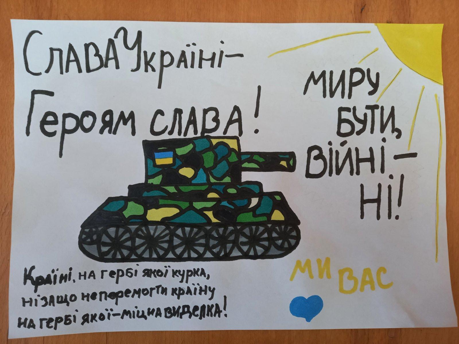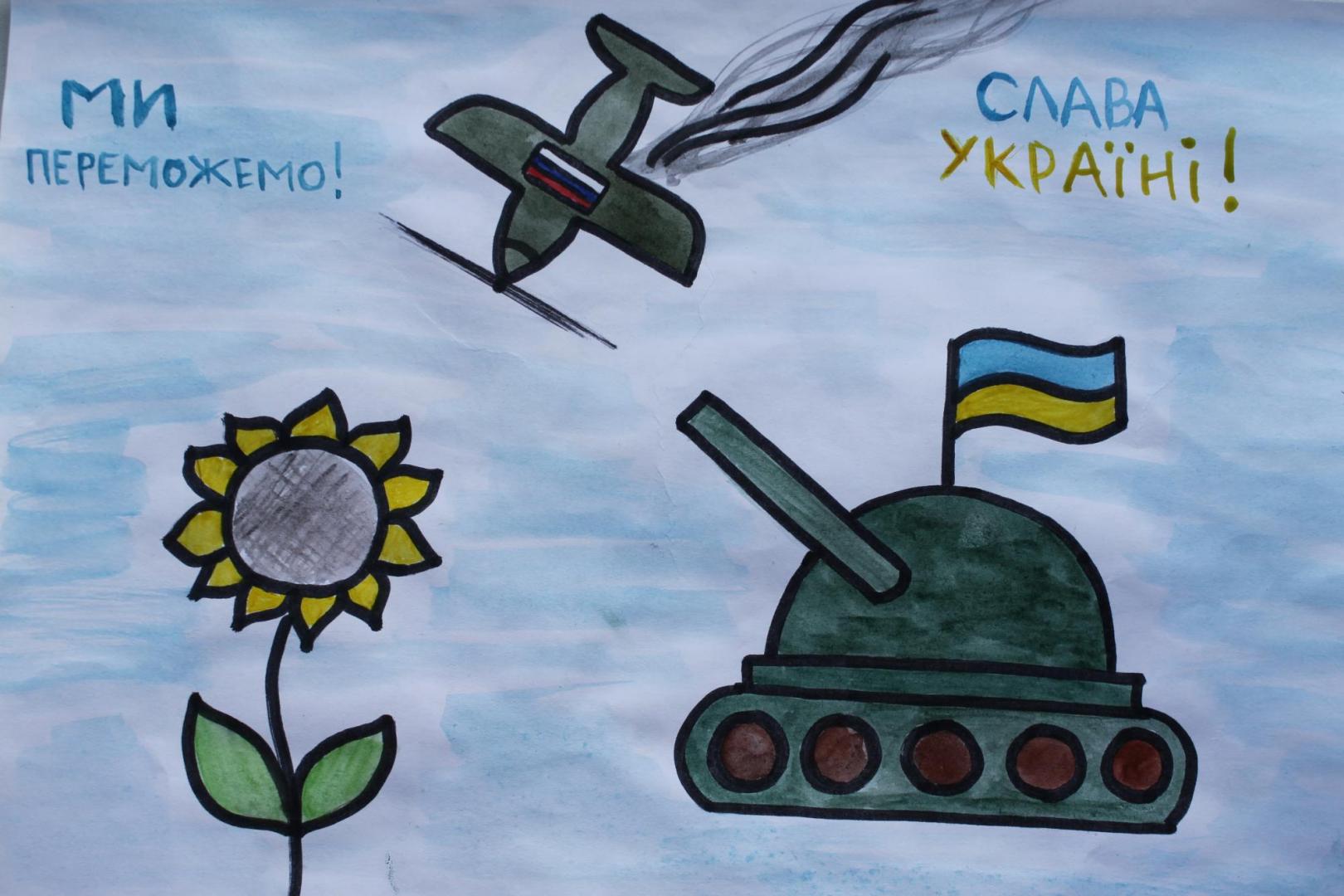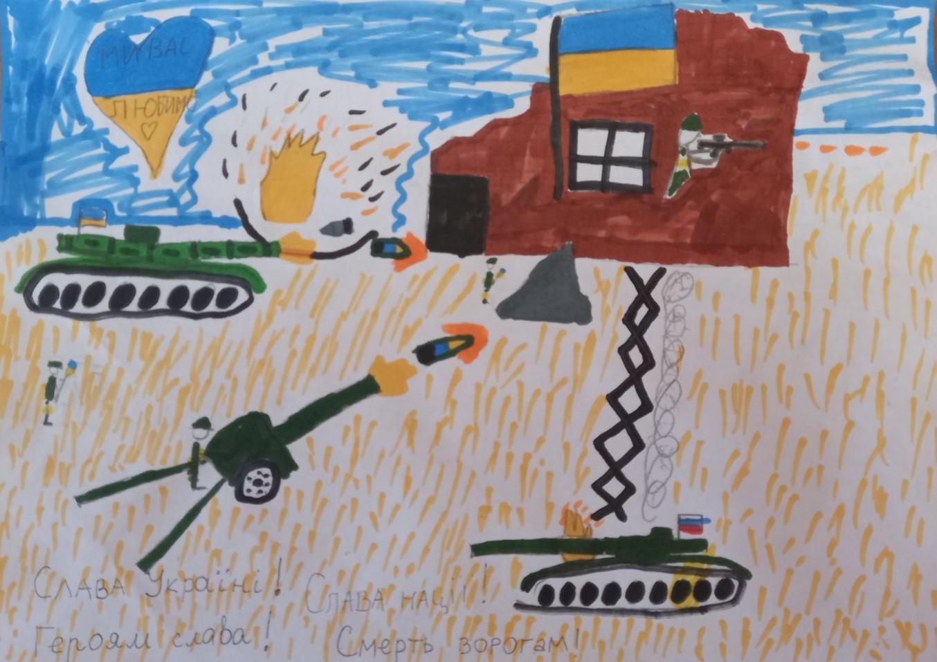 Звісно, малеча хвилюється та підтримує захисників, однак сподіваємося, що вже найближчим часом у роботах дітей будуть зображені веселі та радісні дні.