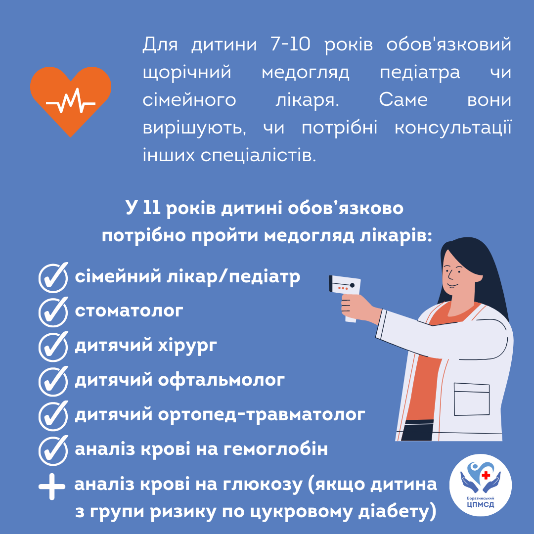 У якому віці і яких спеціалістів слід пройти школярам, пояснює Боратинський ЦПМСД.