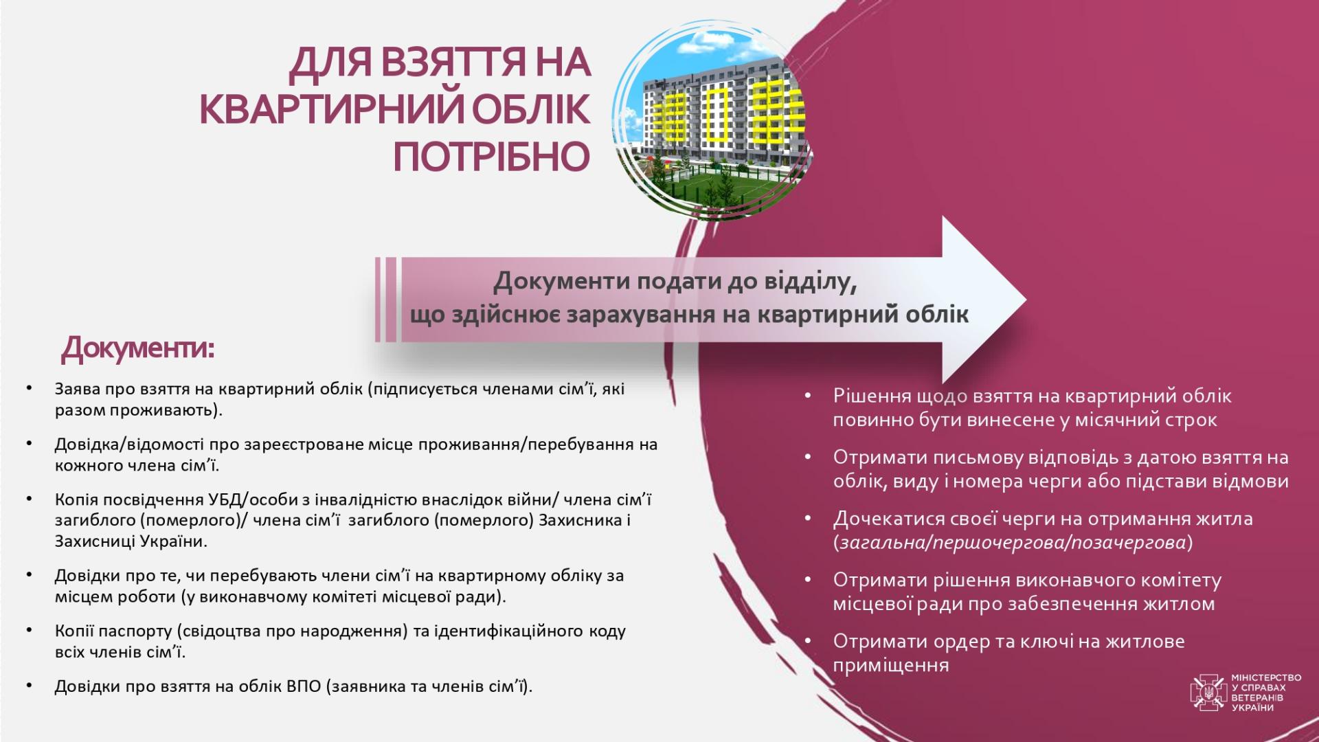 Міністерство у справах ветеранів України підготувало інформаційні матеріали щодо актуальних питань у сфері реалізації права на житло ветеранами війни, членами сімей загиблих (померлих) ветеранів, Захисників і Захисниць України.