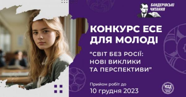 В рамках Бандерівських читань недержавний аналітичний центр «Українські студії стратегічних досліджень» оголосив Всеукраїнський конкурс есе для молоді на тему: «Світ без росії: нові виклики та перспективи», — повідомляють на сайті Волинської ОДА.