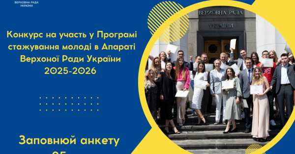 Для участі у конкурсі необхідно до 25 липня заповнити заявку в електронному вигляді: https://notify.rada.gov.ua/spot/main/intern.