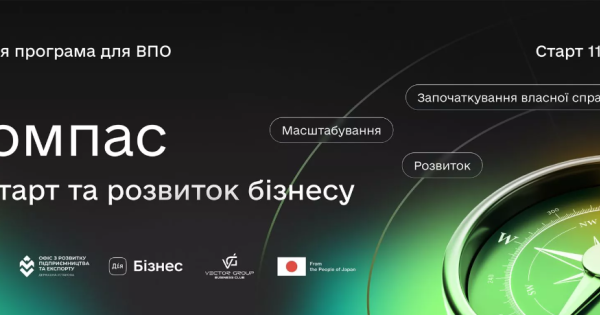 Триває набір на довгострокову практичну освітню програму «Компас: рестарт та розвиток бізнесу» для підприємців з-поміж ВПО, яка покликана надати знання та поштовх для подальшого розвитку власної справи або підприємства. За результатами навчання учасники запровадять нові підходи до організації діяльності, а найактивніші зможуть збільшити прибуток від власної підприємницької діяльності.