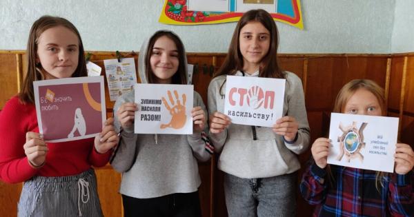 Учні та педагоги Мстишинської школи взяли участь в акції «16 днів проти насильства», аби привернути увагу людей до проблем подолання насильства у сім’ї, жорстокого поводження з дітьми, захисту прав жінок та протидії торгівлі людьми.