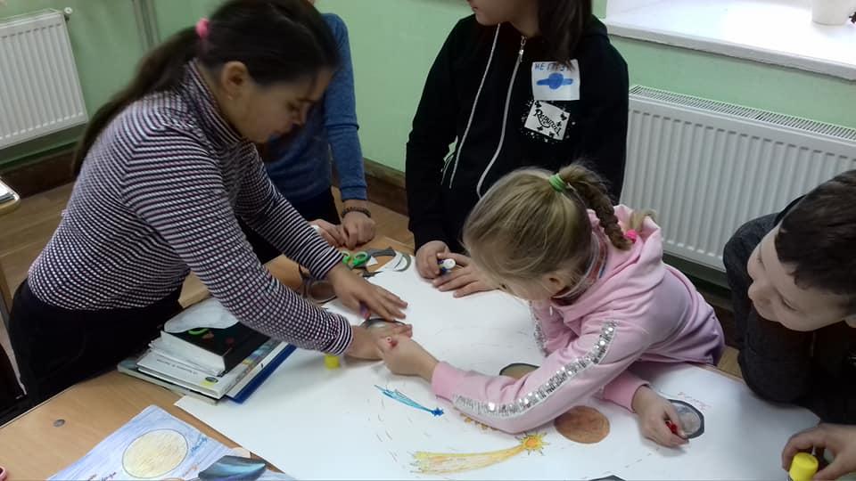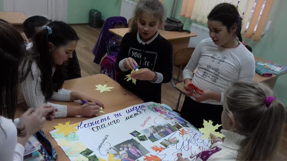 «Проектна діяльність на уроках природознавства. Чудова нагода поспілкуватись, навчитись працювати в команді та домовлятись, прямувати до спільної мети, дізнатись щось цікаве, отримати задоволення від роботи, продемонструвати результат! Усміхнутись! Ми вчимось кожного дня! Сьогодні – піднімаємо листок, а завтра розглядаємо планети!», – написала на своїй сторінці у Фейсбук вчителька біології Ольга Сергійчук.
