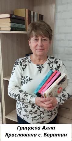 Вже багато років поспіль однією з кращих читачок бібліотеки с. Боратин є Грицаєва Алла Ярославівна, яка працює старшою медичною сестрою в дитячому садочку «Сонечко». Читачка відвідувала бібліотеку дуже часто, але тепер через стан здоров’я бібліотекар Руслана Фурман обслуговує її по місцю роботи, щораз приносячи 4-6 книг. Алла Ярославівна любить читати українських та зарубіжних письменників.