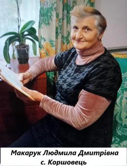 Найактивнішим читачем року бібліотеки села Коршовець стала Макарук Людмила Дмитрівна. Вона любить читати книги різного жанру українських та зарубіжних письменників, історичні, пригодницькі, фантастичні твори. Навіть проживаючи в іншому населеному пункті, Людмила Дмитрівна знаходить час щоб відвідати бібліотеку.