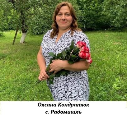 У бібліотеці села Радомишль найактивнішою читачкою стала Оксана Кондратюк. Пані Оксана працює вчителькою української мови та літератури у місцевому ліцеї, дуже полюбляє читати книги. Найулюбленішими письменниками є: Світлана Талан, Олена Печорна, Сара Джіо. Оксана Петрівна бере книги не тільки для себе, любов до читання вона прививає і своїм рідним.